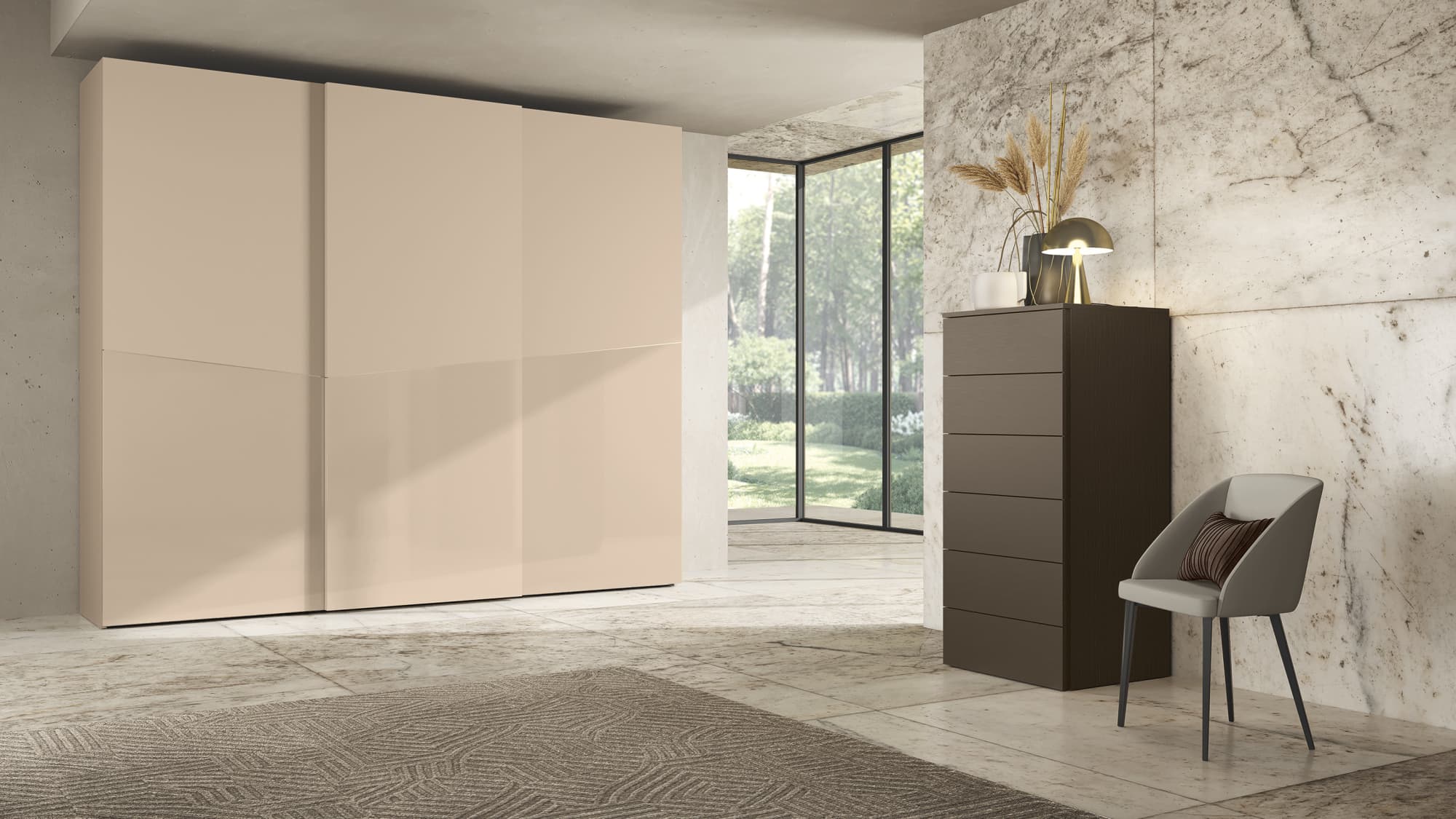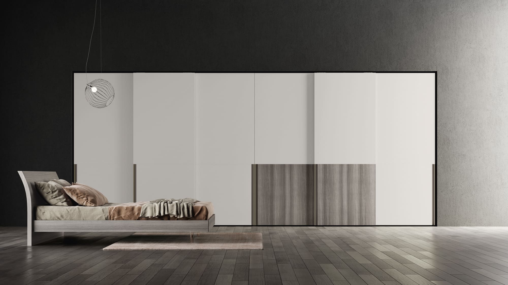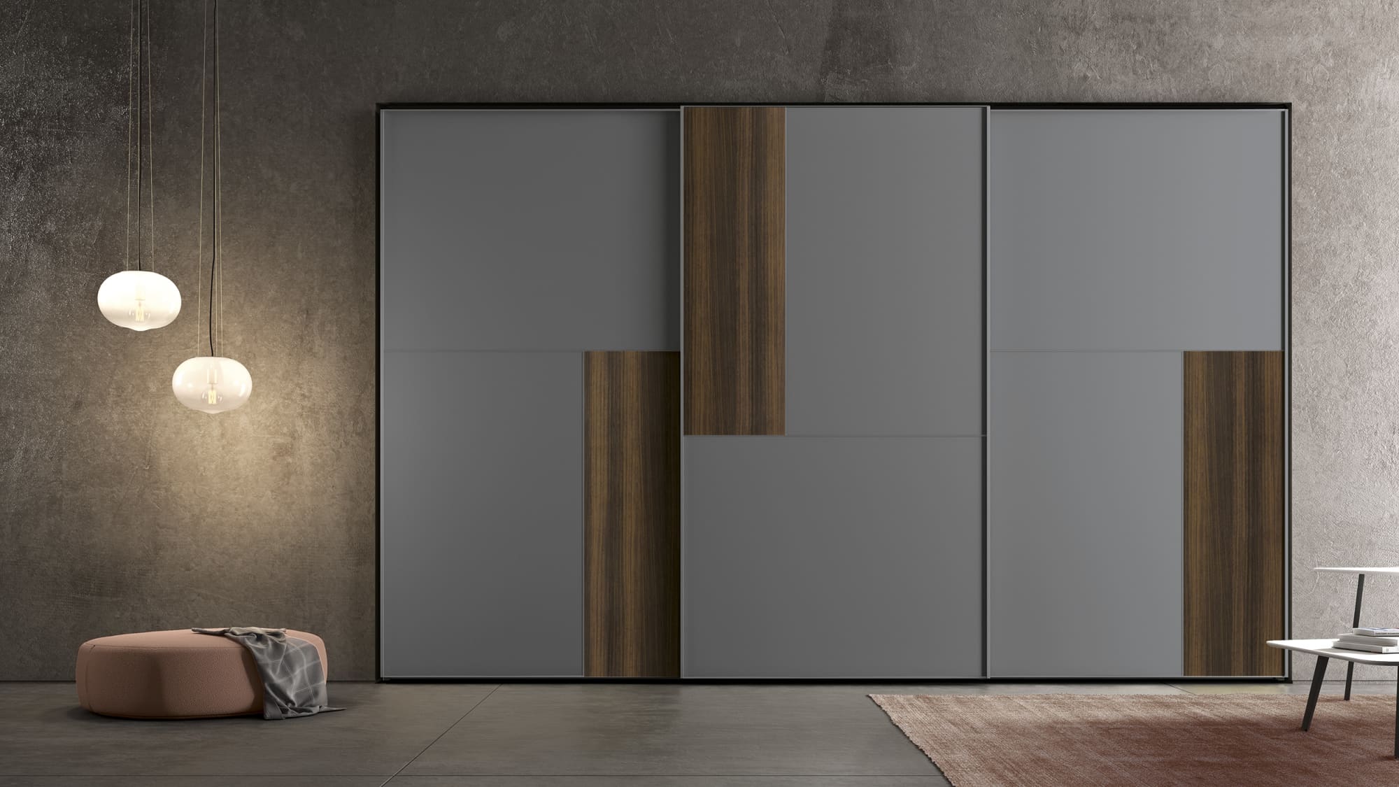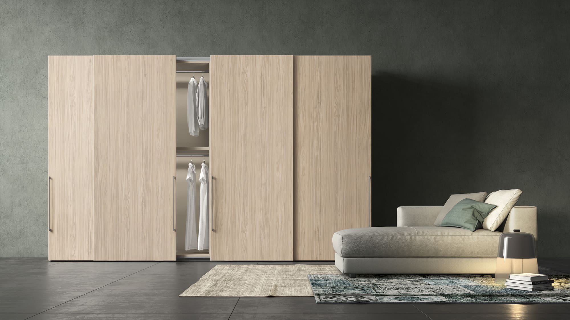 Questa linea di armadi scorrevoli offre una grande flessibilità di arredo grazie ad una eccezionale modularità e una vasta scelta di strutture interne e ante dalle finiture creative e pregiate.