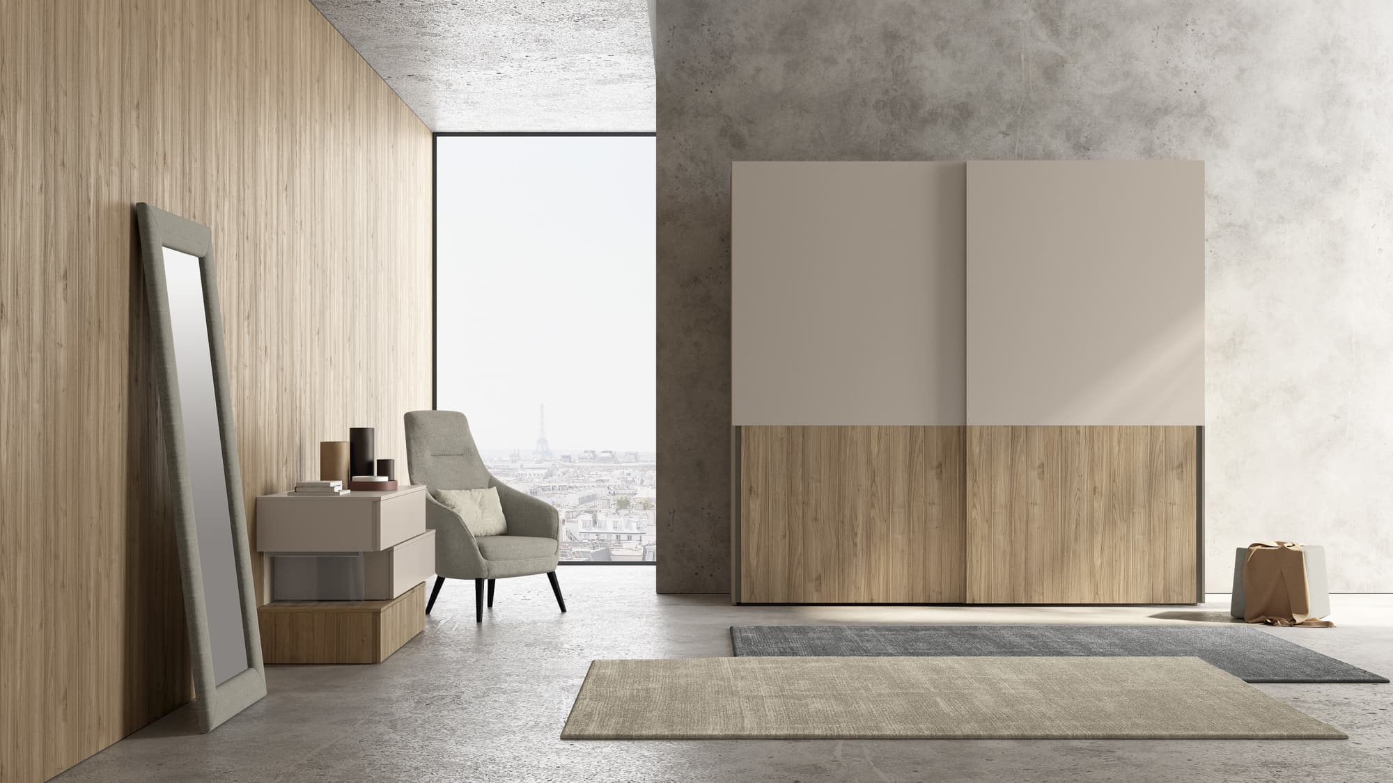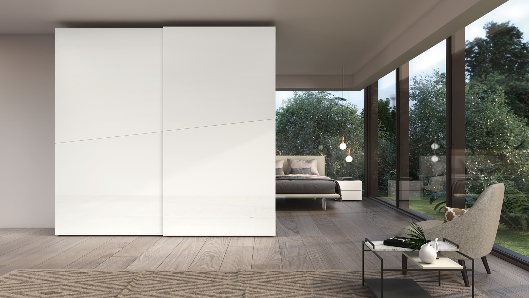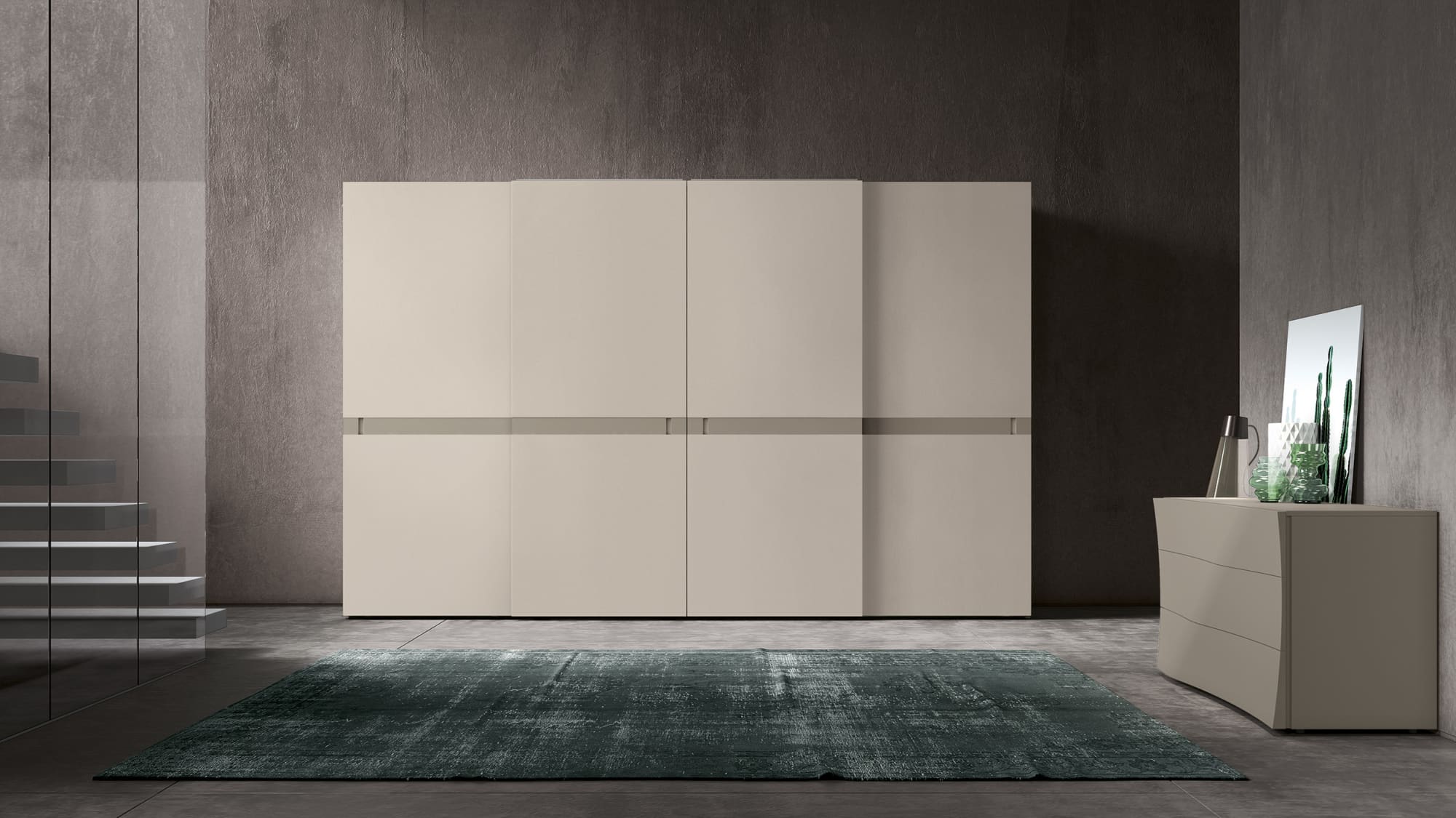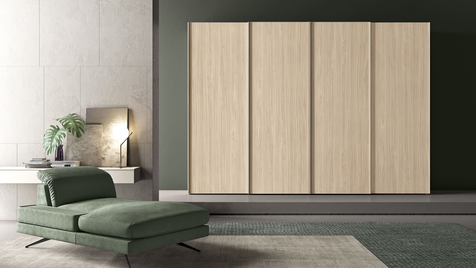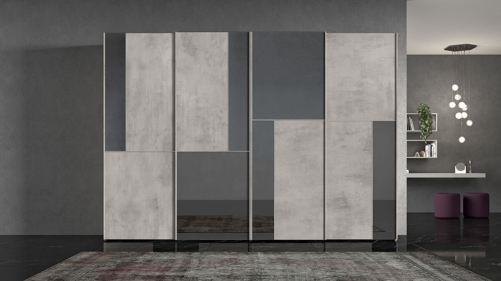 Questa linea di armadi scorrevoli offre una grande flessibilità di arredo grazie ad una eccezionale modularità e una vasta scelta di strutture interne e ante dalle finiture creative e pregiate.
