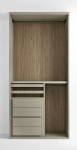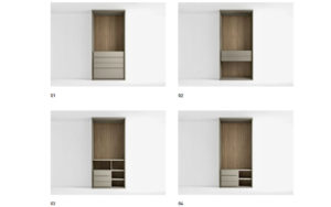 Scopri i materiali e i colori degli interni, degli esterni e i particolari per questo modello della Linea Armadi Confalone.