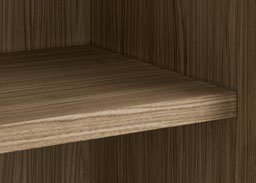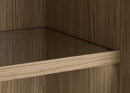 Dietro le ante l’ordine è garantito da un’ampia scelta di attrezzature interne, soluzioni funzionali e curate nel dettaglio. I ripiani e i raster si distinguono per gli spessori importanti, mentre le cassettiere sono realizzabili con frontali in legno o vetro.