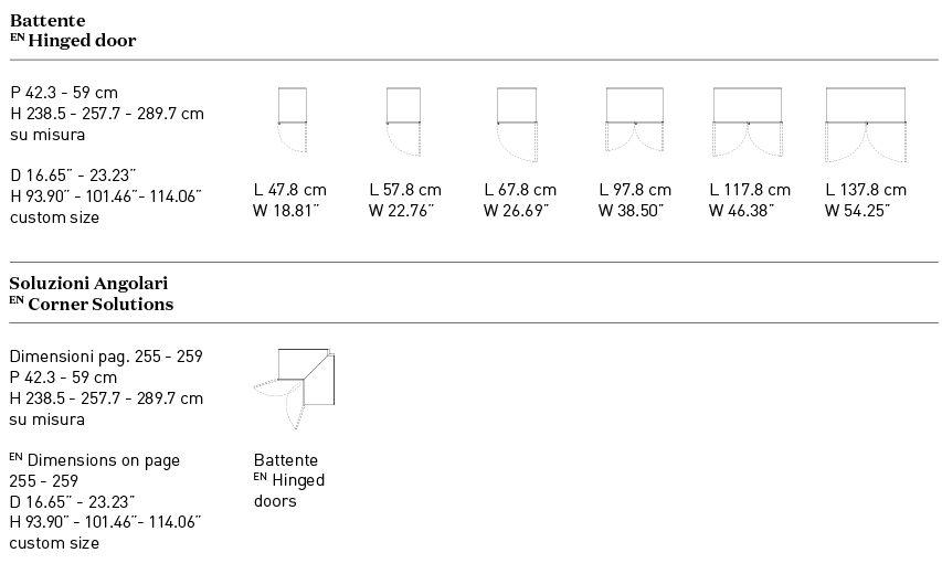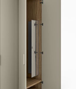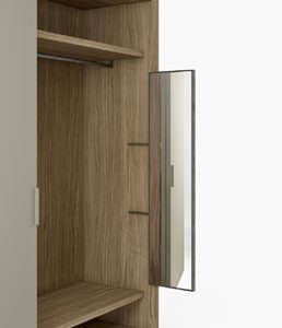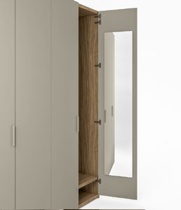 Tipologia di anta: questa linea di armadi Confalone è realizzata con una innovativa anta a battente che può raggiungere una apertura di 180°.