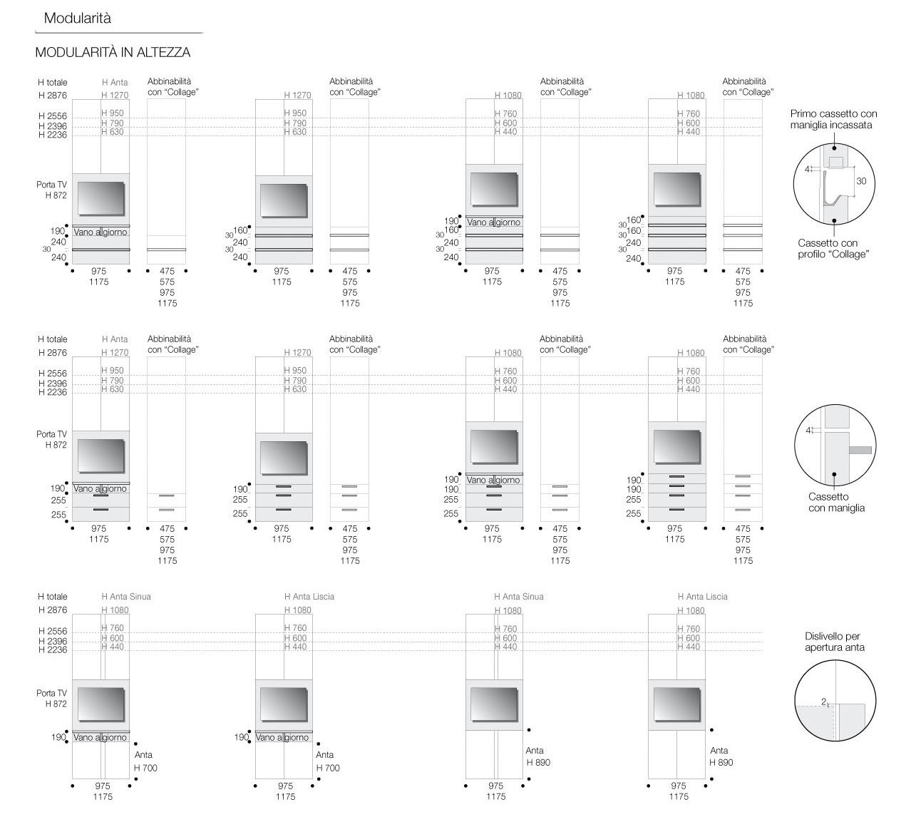 Scopri i materiali e i colori degli interni, degli esterni e i particolari per questo modello della Linea Armadi Confalone.
