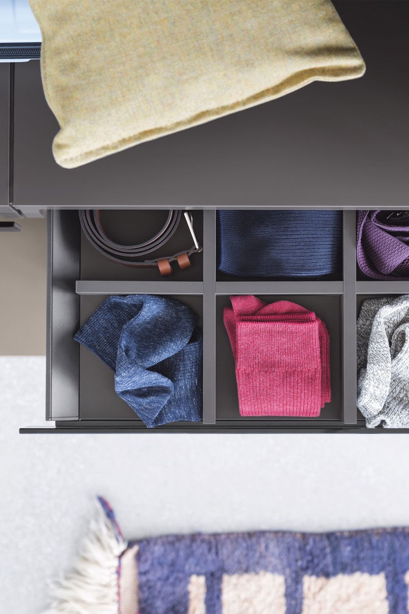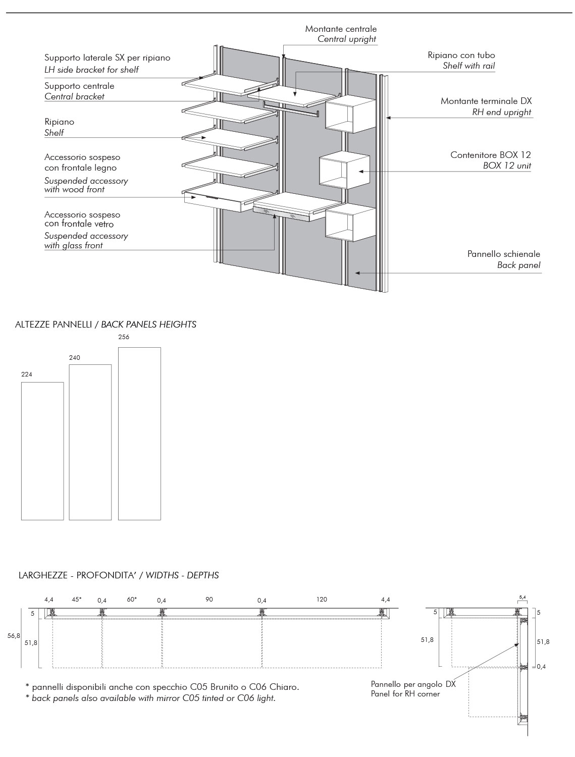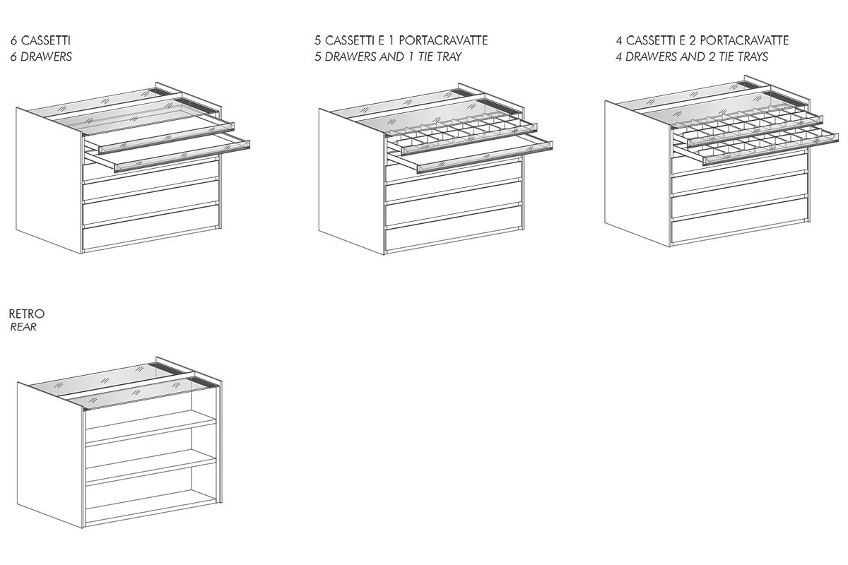 Scopri i materiali e i colori degli interni, degli esterni e i particolari per questo modello della Linea Armadi Confalone.