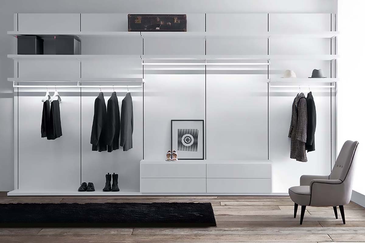 Questa cabina armadio by Confalone offre una totale libertà di composizione grazie ai moduli armadio senza ante che possono essere accostati liberamente tra loro creando ambienti accoglienti. Nelle versioni con telaio, la vasta scelta di finiture donerà alla vostra cabina armadio un design davvero affascinante.