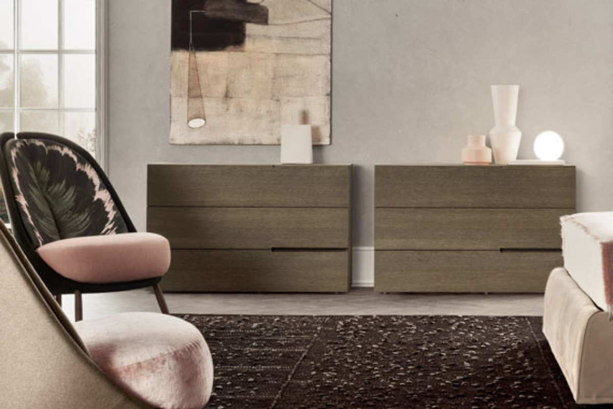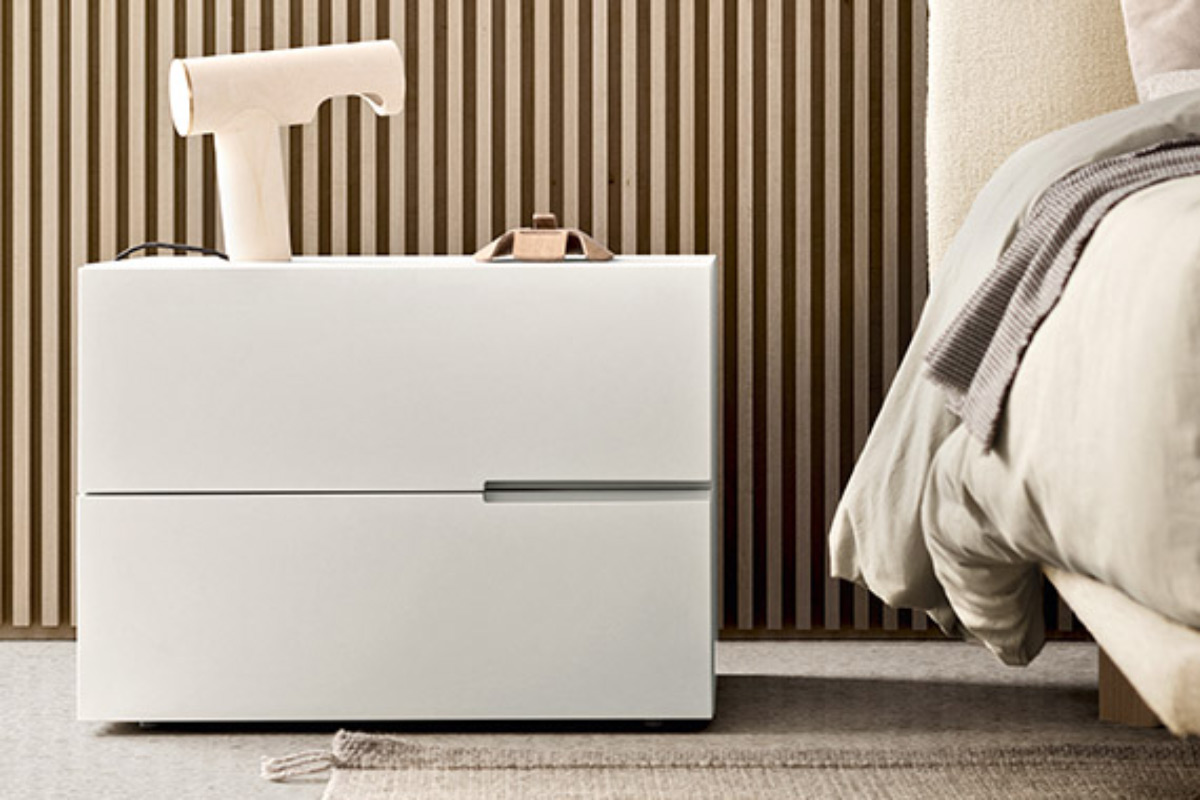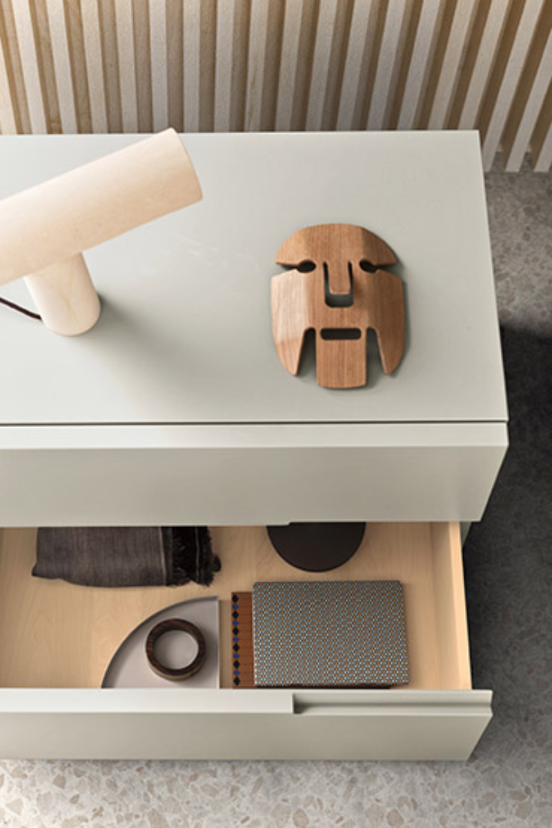 Questa linea di comodini e cassettiere by Confalone offre composizioni compatte e modulari capaci di creare soluzioni salva spazio personalizzate, grazie all’ampia disponibilità di varianti dimensionali