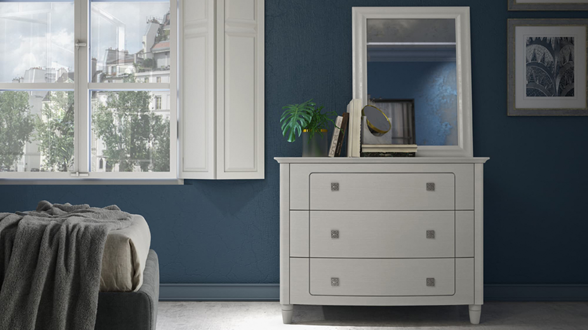 Una linea di comò dallo stile classico e delicato. Superfici curve e maniglie in bella vista per arredare la camera da letto con un design classico e funzionale.