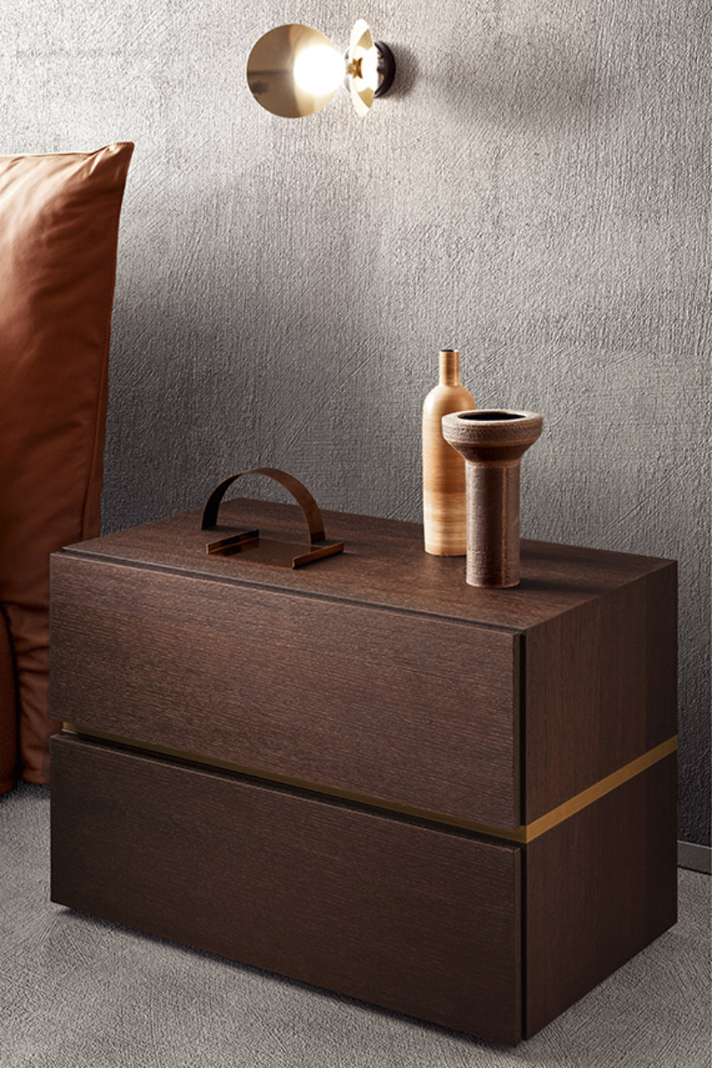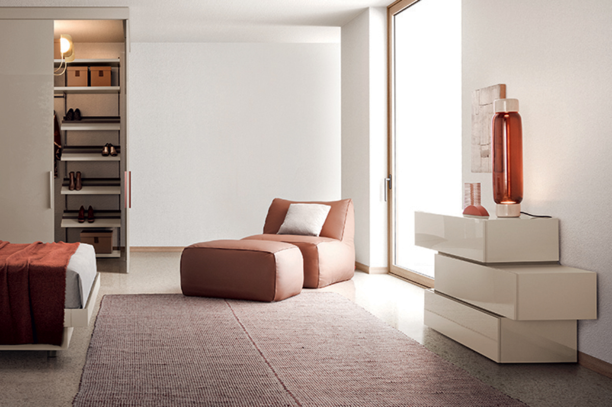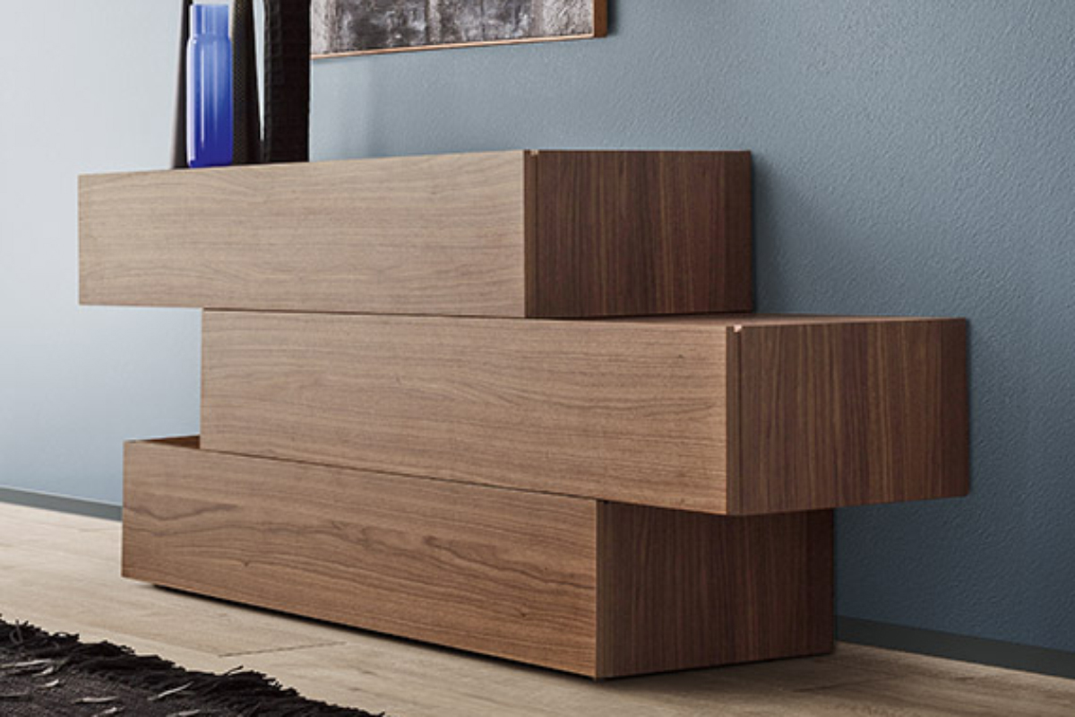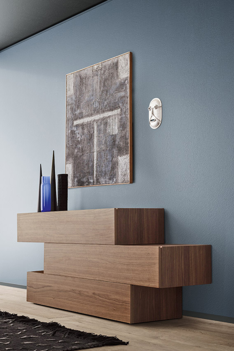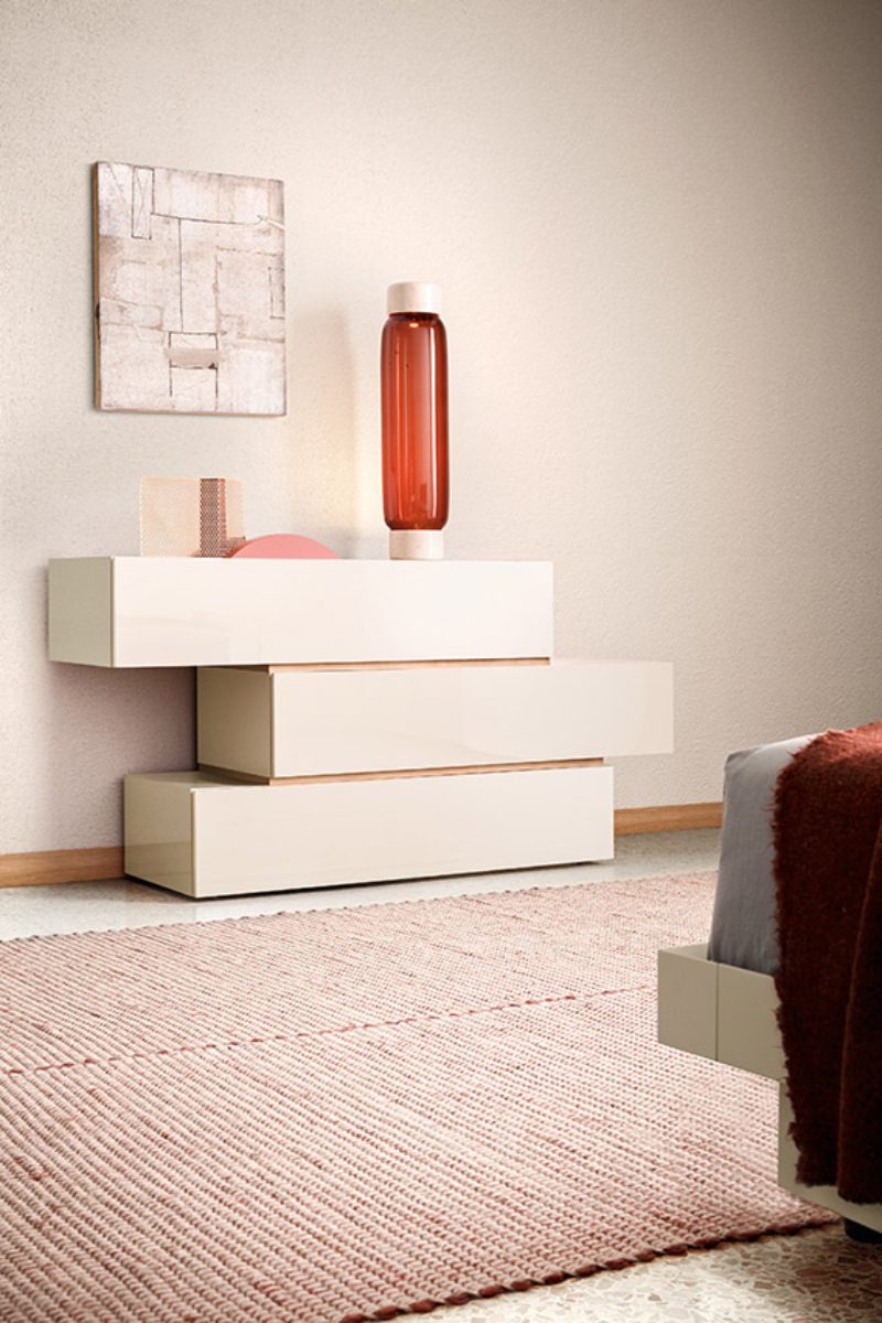 Design lineare ed elegante, questa linea di comò e comodini offre molteplici possibilità compositive: soluzioni lineari o sfalsate, a terra o sospese. Il design semplifica gli elementi che interrompono la materia, elimando le maniglie e ricavando un incavo laterale per l’apertura dei cassetti.