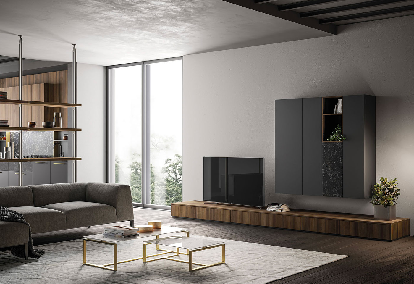 Gli speciali cassetti alti 24 centimetri spezzano il ritmo di questo abbinamento, rendendolo ancor più personale.