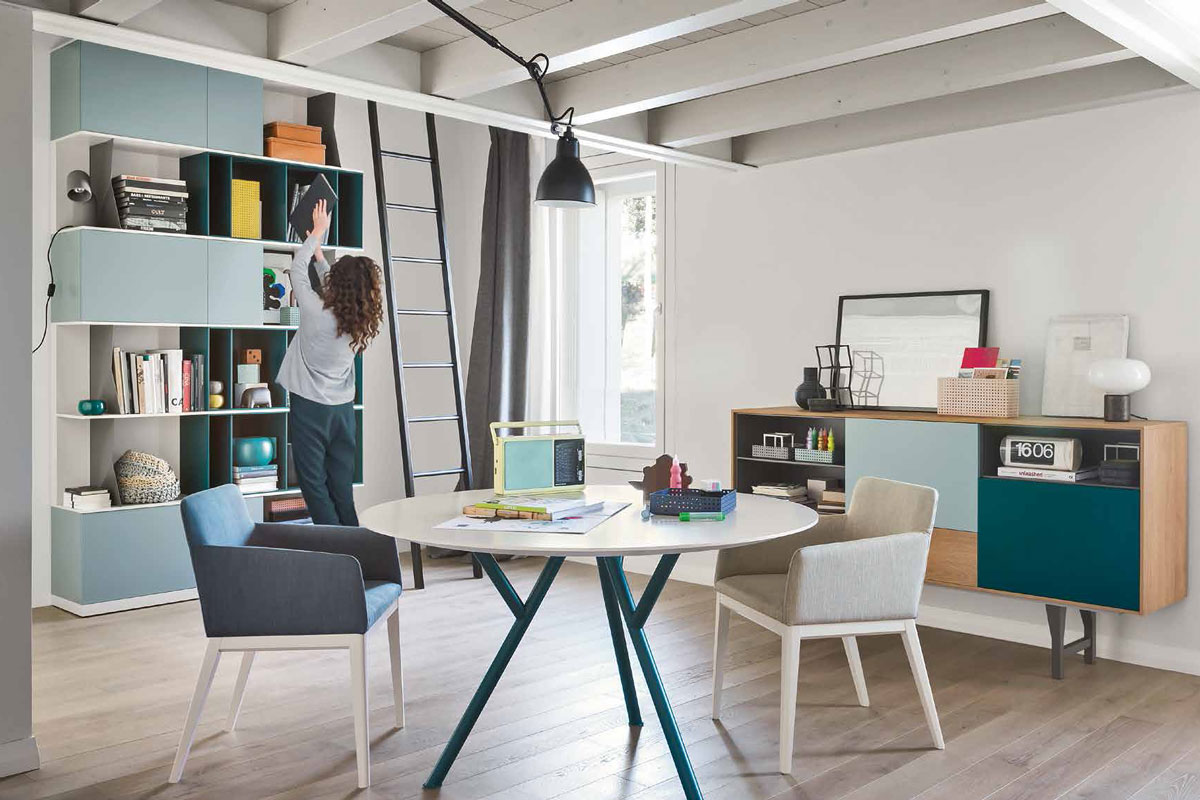 Questa libreria ridefinisce gli spazi della tua zona giorno, proponendo soluzioni a terra o  sospensione  a parete. Grazie agli elementi Box, ai divisori e alla vasta scelta di colori potrete creare alternanze di spazi pieni e vuoti che doneranno ai vostri ambienti un tocco ricercato, raffinato e moderno.