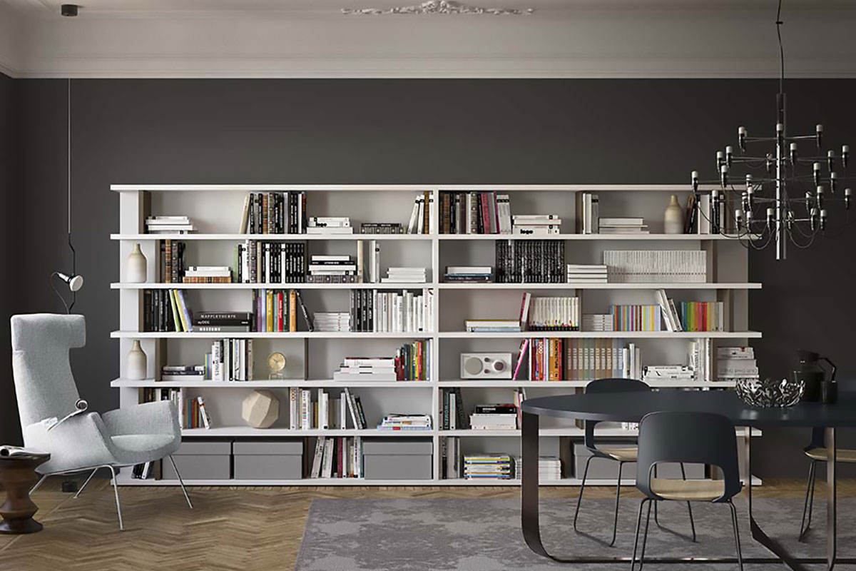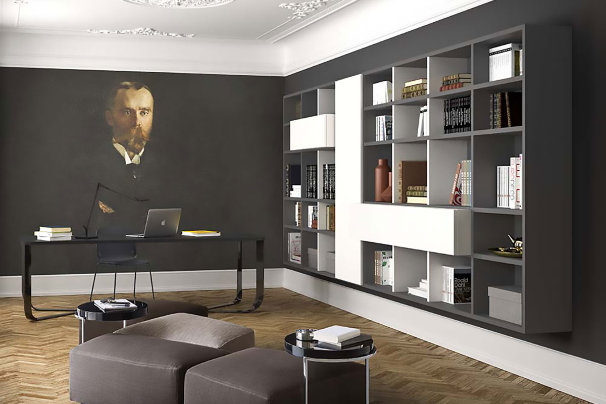 Questa linea di libreria modulare Confalone offre la possibilità di sfruttare gli ambienti al millimetro grazie grazie da una vasta scelta di moduli ed elementi. Questo modello offre infatti la possibilità di scegliere tra elementi posizionati a terra o sospesi. Un altro punto di forza di questo modello è la possibilità di essere integrata con i moduli della parete attrezzata (L4-Mod2).