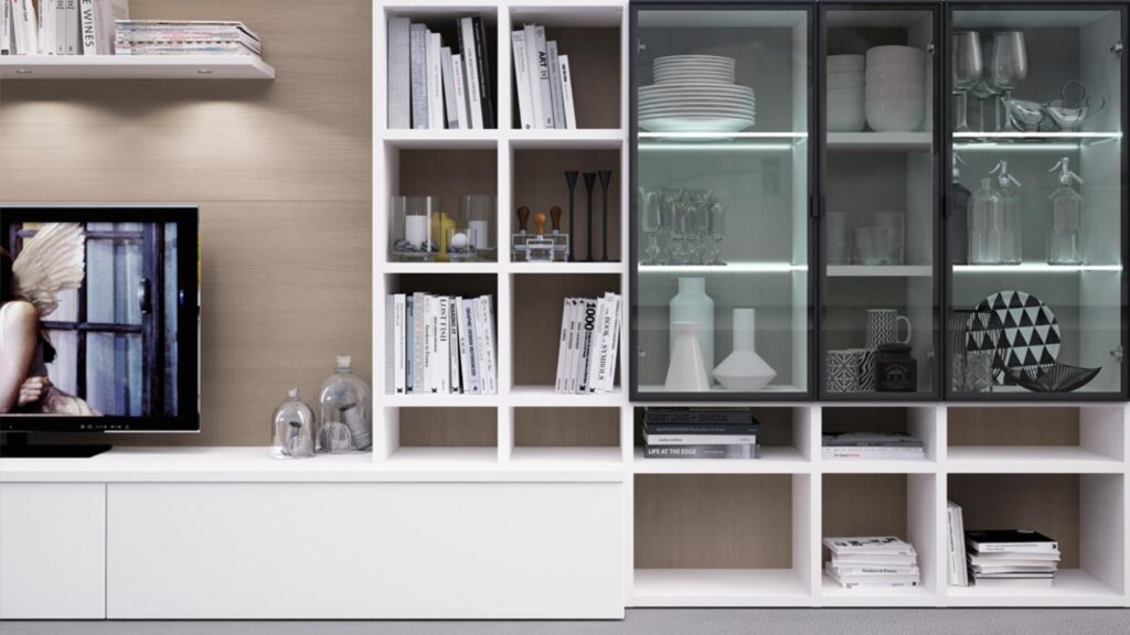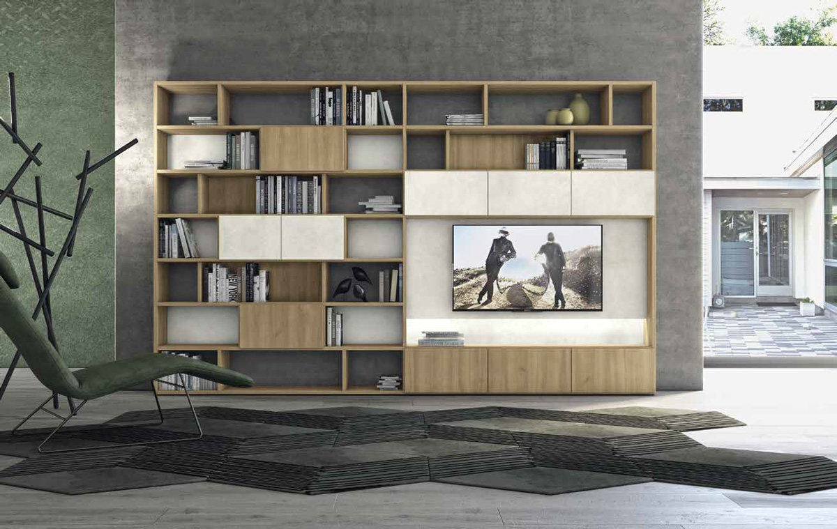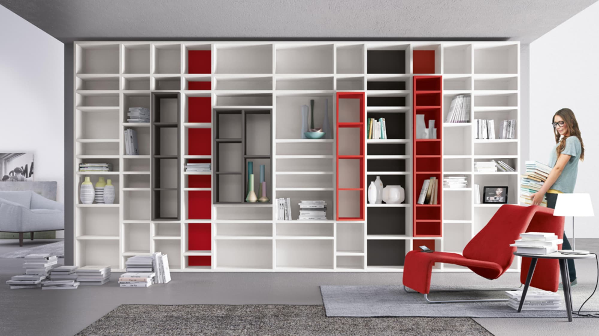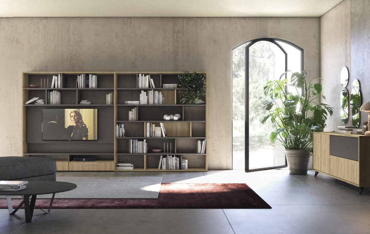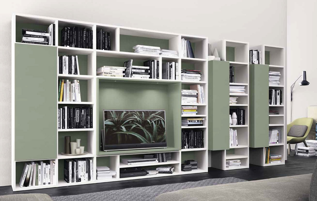 La modularità eccezionale di questa linea di librerie si presta ad arredare il living maniera fresca e curata, prestandosi anche come elemento separatore per definire gli ambienti senza rinunciare alla luce.