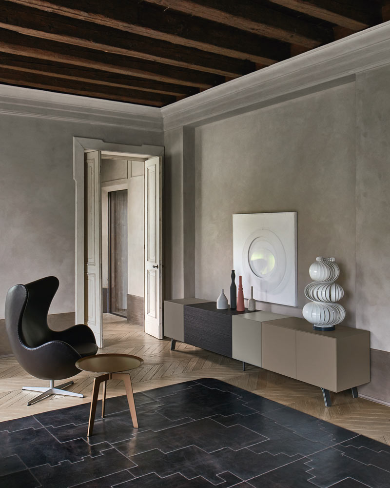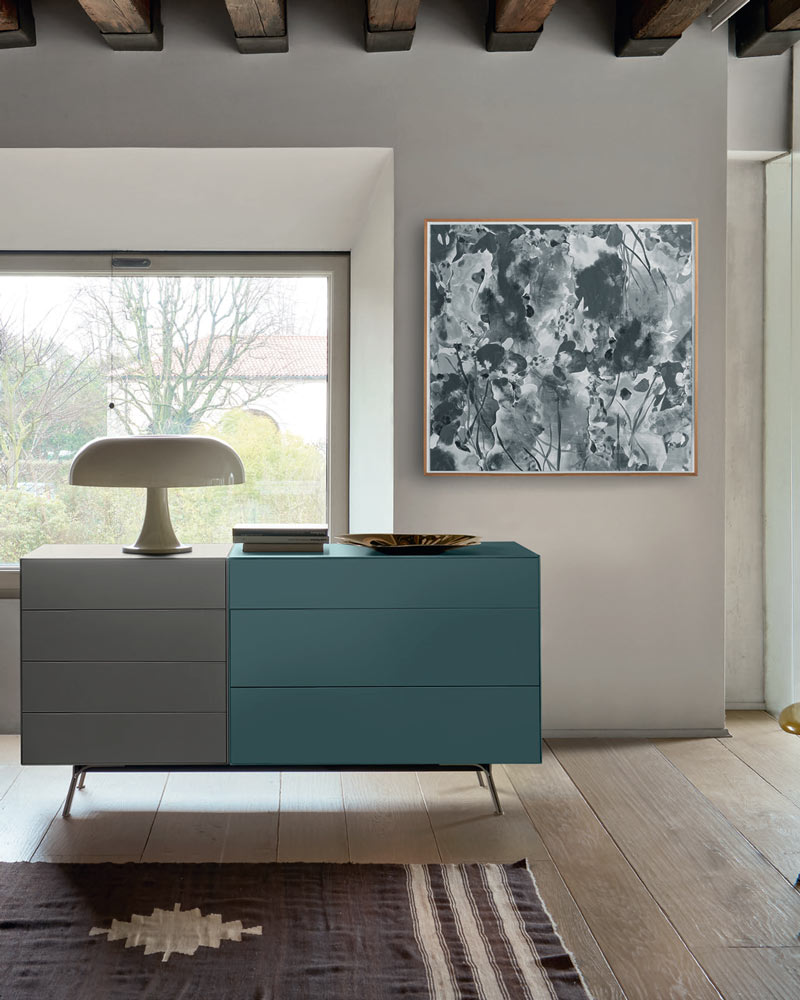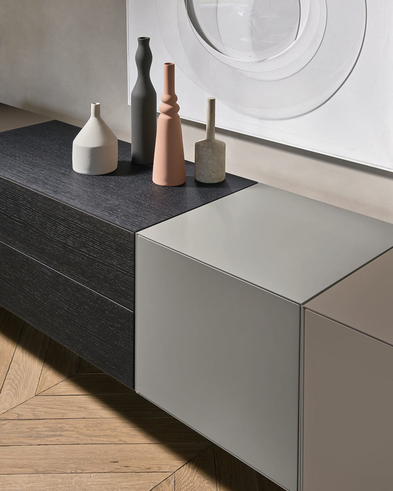 L’alternanza cromatica dei moduli definisce questa linea di madie e contenitori in cui la materia viene plasmata con la complicità dell’alternanza cromatica. Le finiture si alternano in un gioco di colori e chiaroscuri per regalare  un tocco di unicità alla vostra dimora.