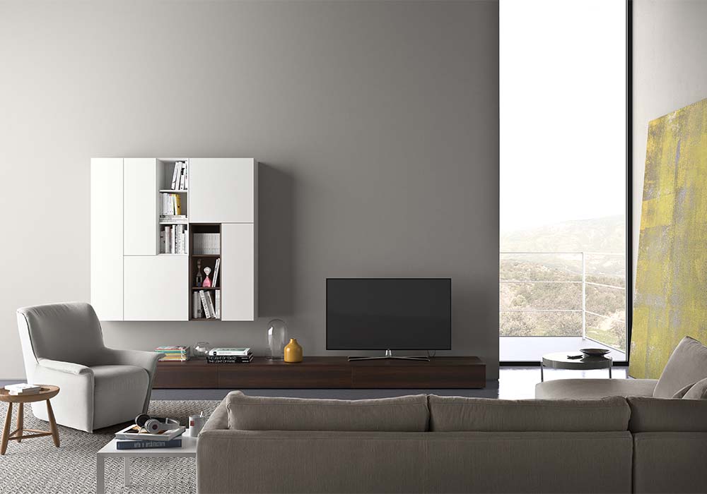 Grazie alla vasta varietà di misure dei moduli avrete la possibilità di adattarlo a qualsiasi ambiente. Massima versatilità ma anche finiture e colori da abbinare tra loro per rendere unico ogni spazio della vostra casa.