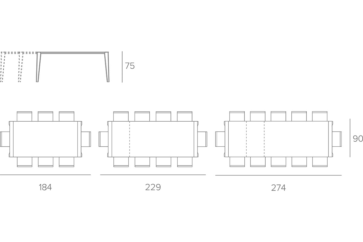 Il modello da 180 cm è un tavolo da living adatto per le grandi occasioni, potendo passare dalla lunghezza-base di 184 centimetri fino a 229 e 274 centimetri.