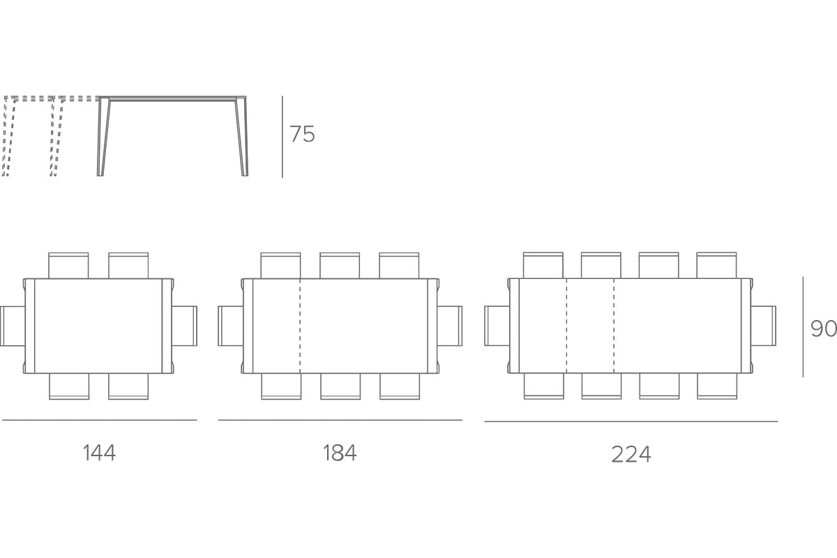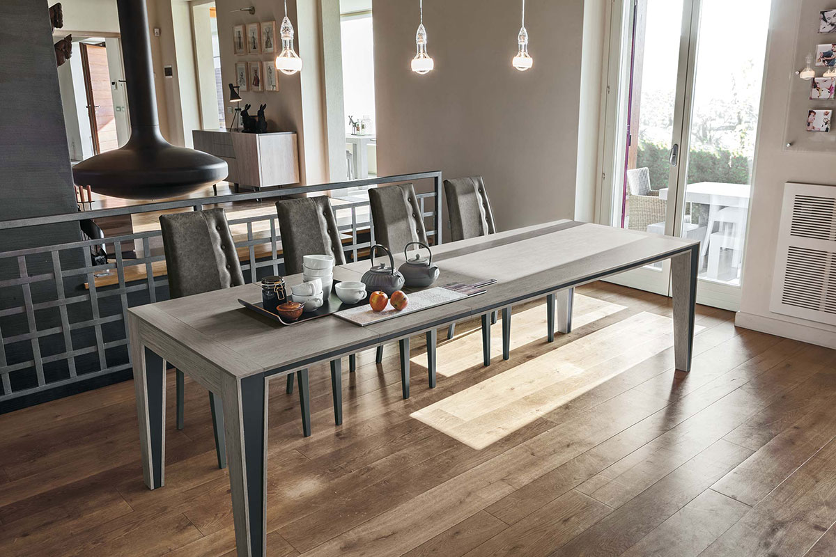 Il modello da 140 cm può infatti passare dall’essere un tavolo di media dimensioni per cucina con quattro sedute (lunghezza di 144 centimetri) ad un vero e proprio tavolo da sala con ben dieci sedute (grazie alle due allunghe da 40 cm);