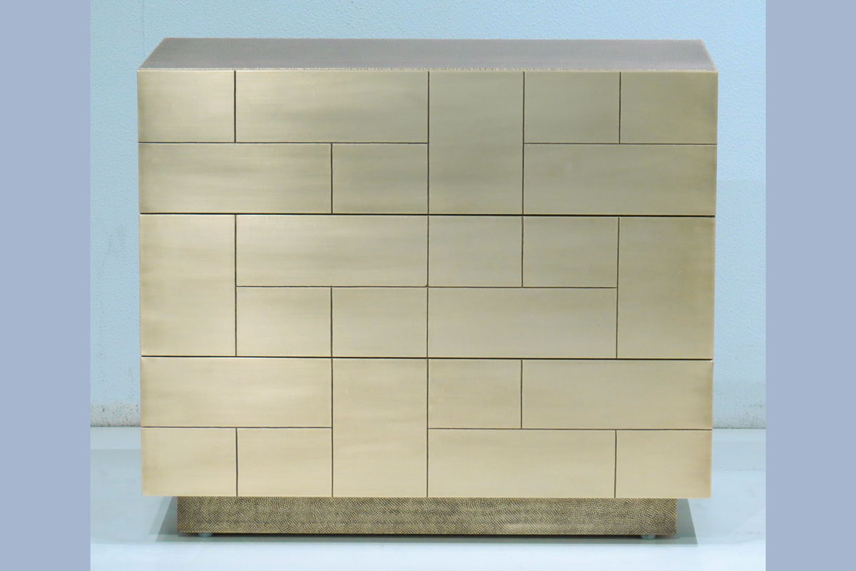 Elegante ed originale questa cassettiera rifinita in metallo oro.