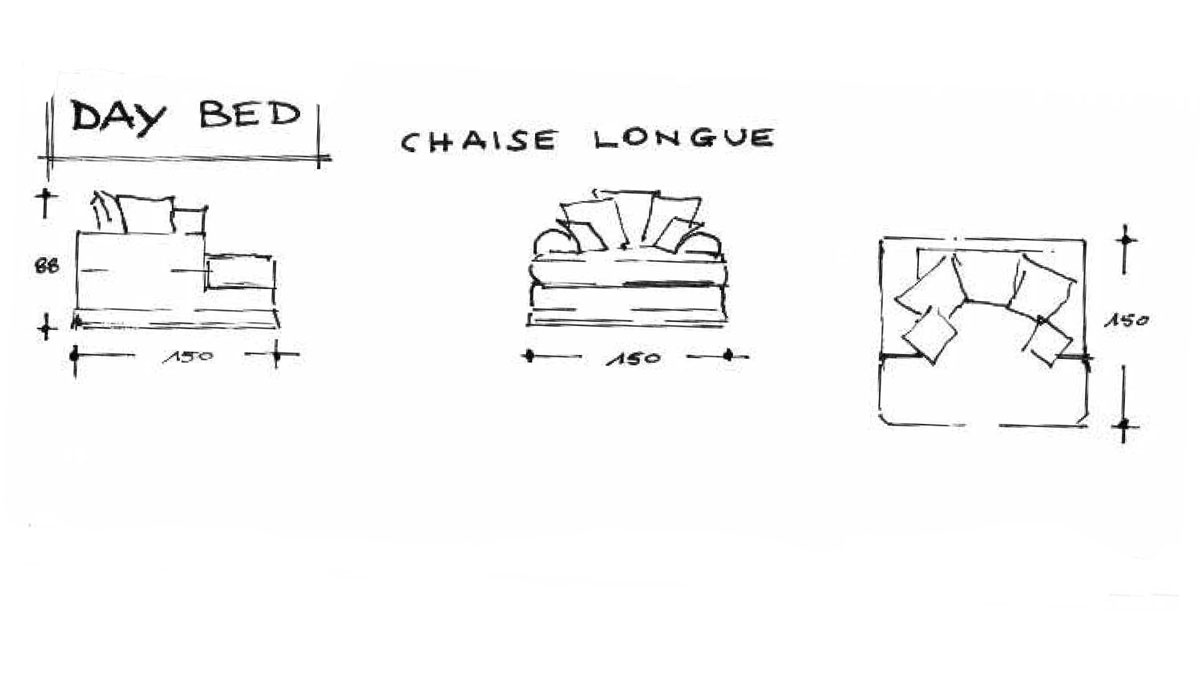 La chaise longue modello Day Bed è una soluzione stand alone che aggiungerà al vostro living un tocco di comfort in più. La Chaise longue Day bed comprende 3 cuscini volanti 60 cm x 60 cm e due cuscini volanti 45 cm x 45 cm.