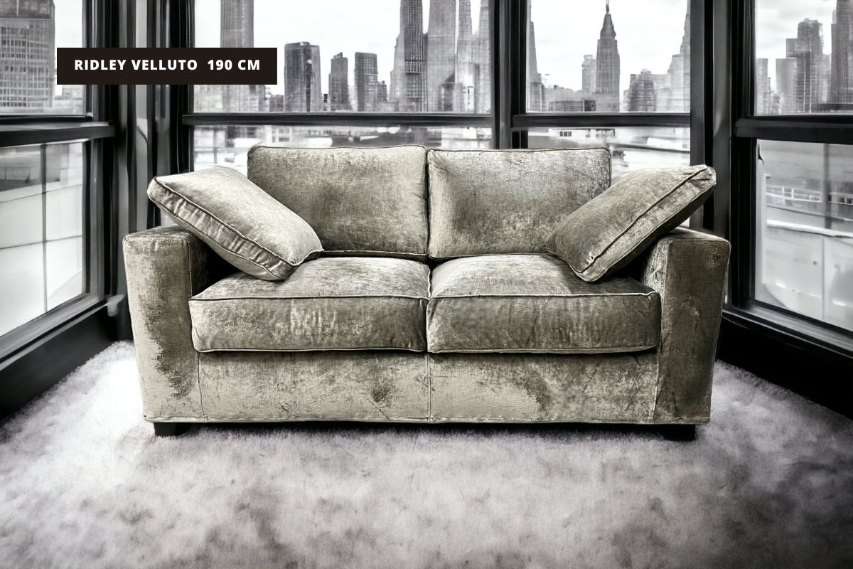 Composizione Ridley 3 elementi: divano, poltrona e pouf. Il rivestimento è realizzato con tessuti 100% cotone, sfoderabili e lavabili. I cuscini di seduta sono realizzati in Dacron e misto piuma un mix che conferisce comfort di seduta ottimale e l’indeformabilità nel tempo.