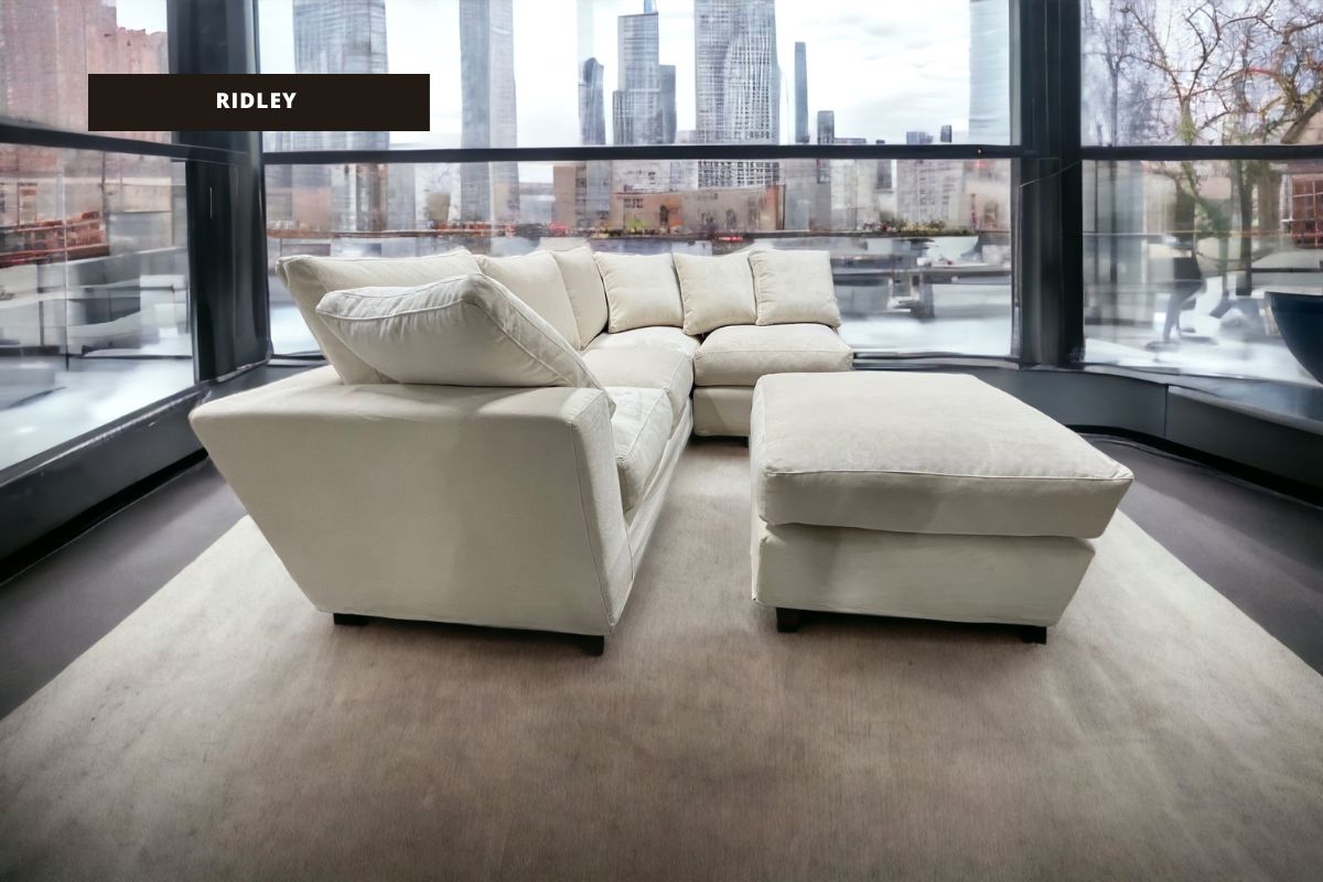 Composizione Ridley: Divano + elemento poltrona + pouf