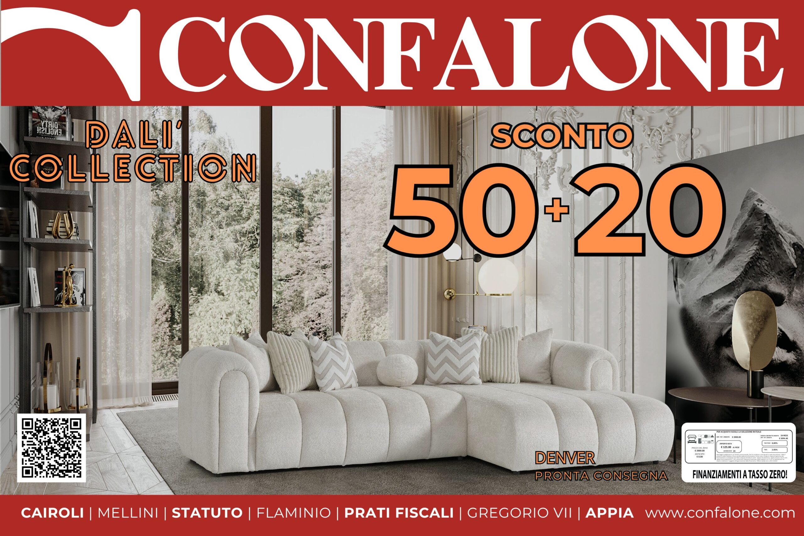 PROMOZIONE 50+20% – La promozione 50+20% è dedicata al divano angolare Denver nel colore e tessuto in pronta consegna.