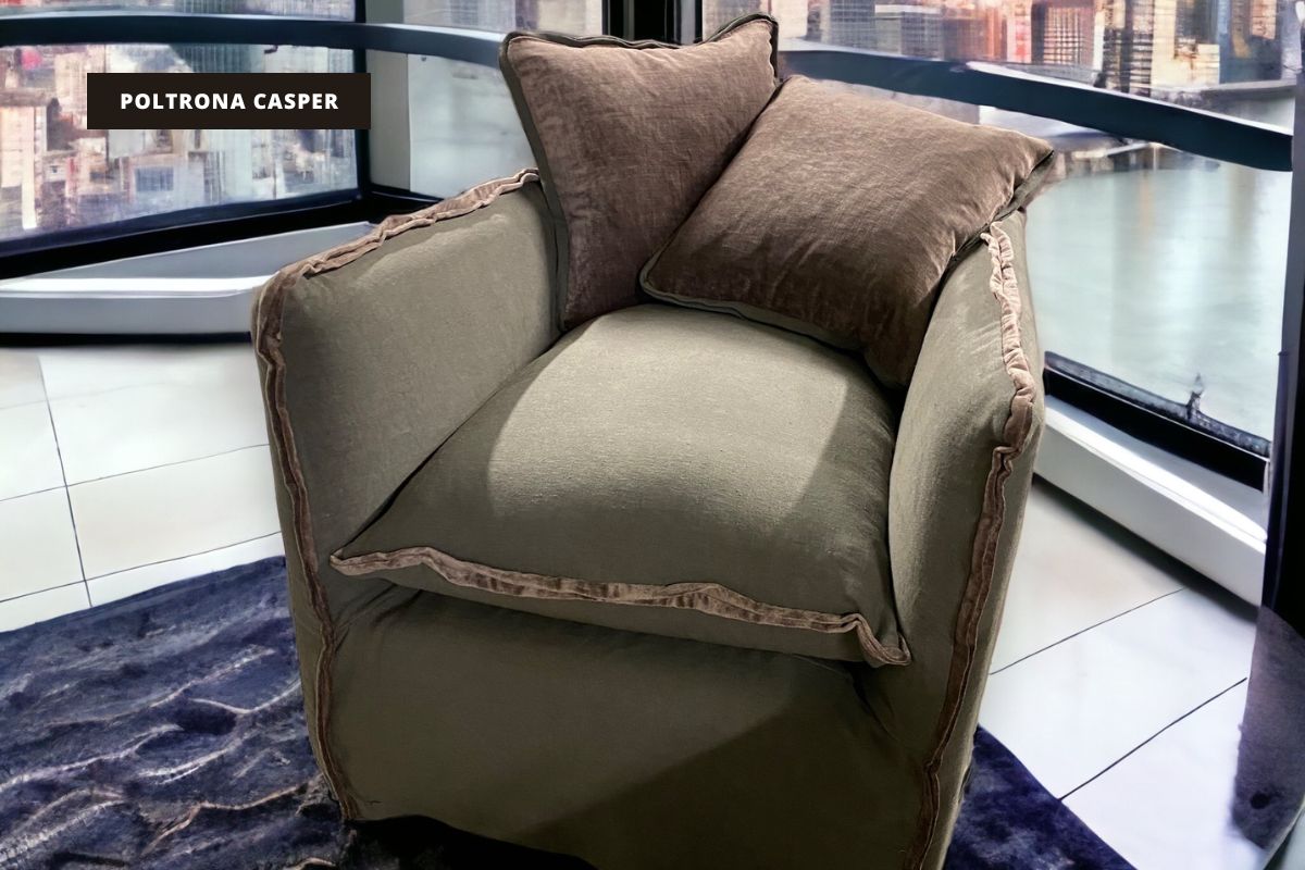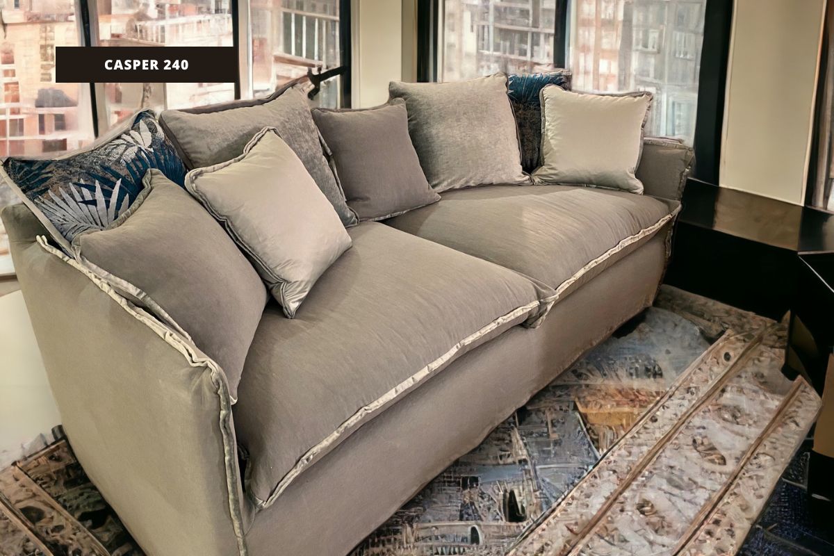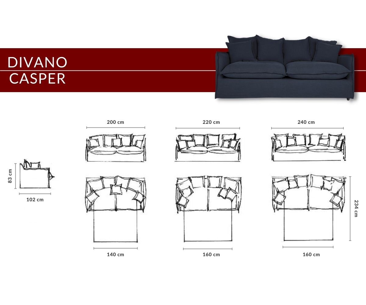 Linee pulite e design minimal per il divano Casper che con i suoi braccioli slim arreda e ottimizza gli spazi. Massimo comfort grazie ai cuscini di seduta in Dacron e misto piuma. Completano la composizione i cuscini volanti. Casper è disponibile on line nei 15 colori standard in cotone 100%. Negli Store Confalone potrai Configurare il Divano Casper con oltre 1200 colori e tessuti in lino, velluto e pelle. Il divano Casper può essere realizzato con letto.