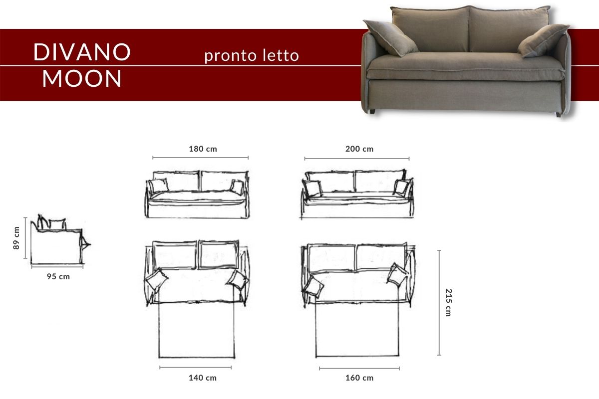 Il divano letto Moon è disponibile in 3 dimensioni e in versione poltrona Letto