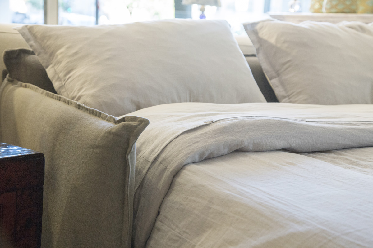 Il divano letto Moon si distingue per le cuciture a vista e il cuscino di seduta unico. Massimo comfort grazie ai cuscini di schienale e seduta in Dacron indeformabile. Il divano letto Moon è provvisto di cuscini volanti sempre con cuciture a vista.