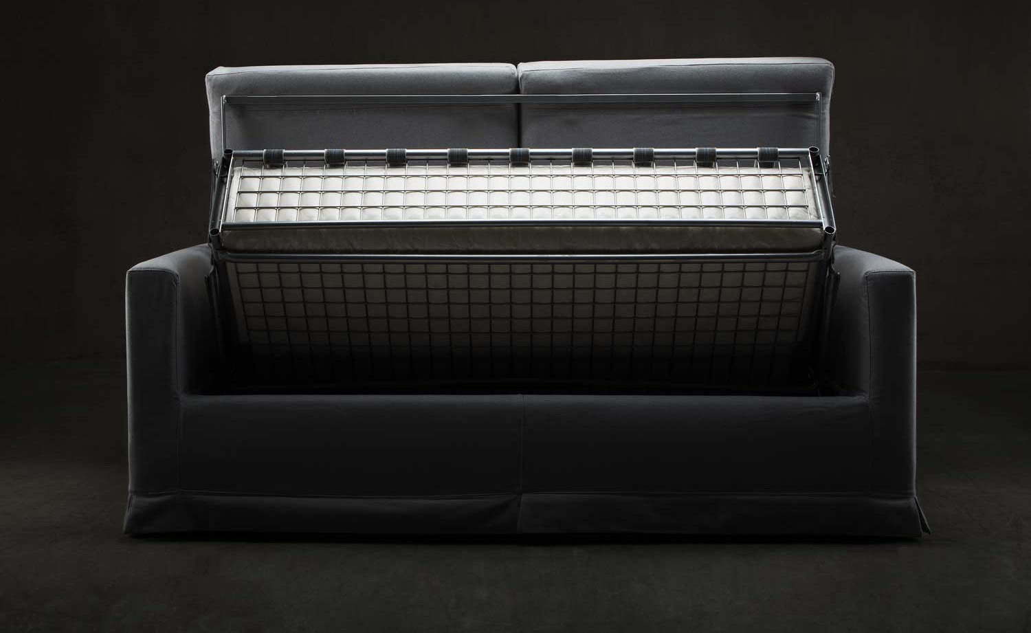 Il divano letto Steve è disponibile in tre misure ed è abbinato ad un materasso in poliuretano espanso H12