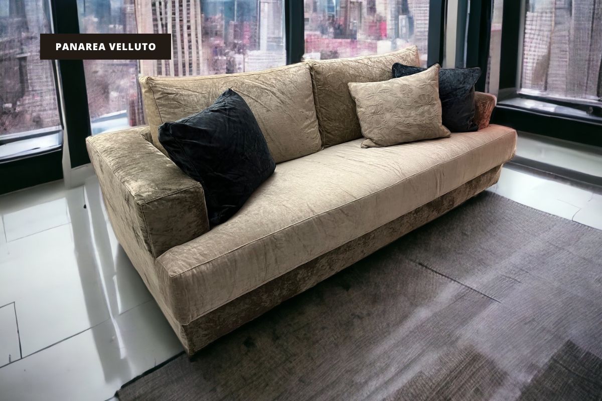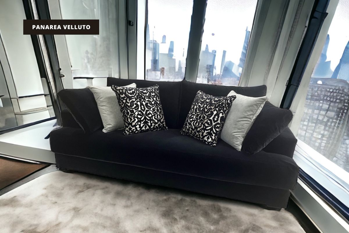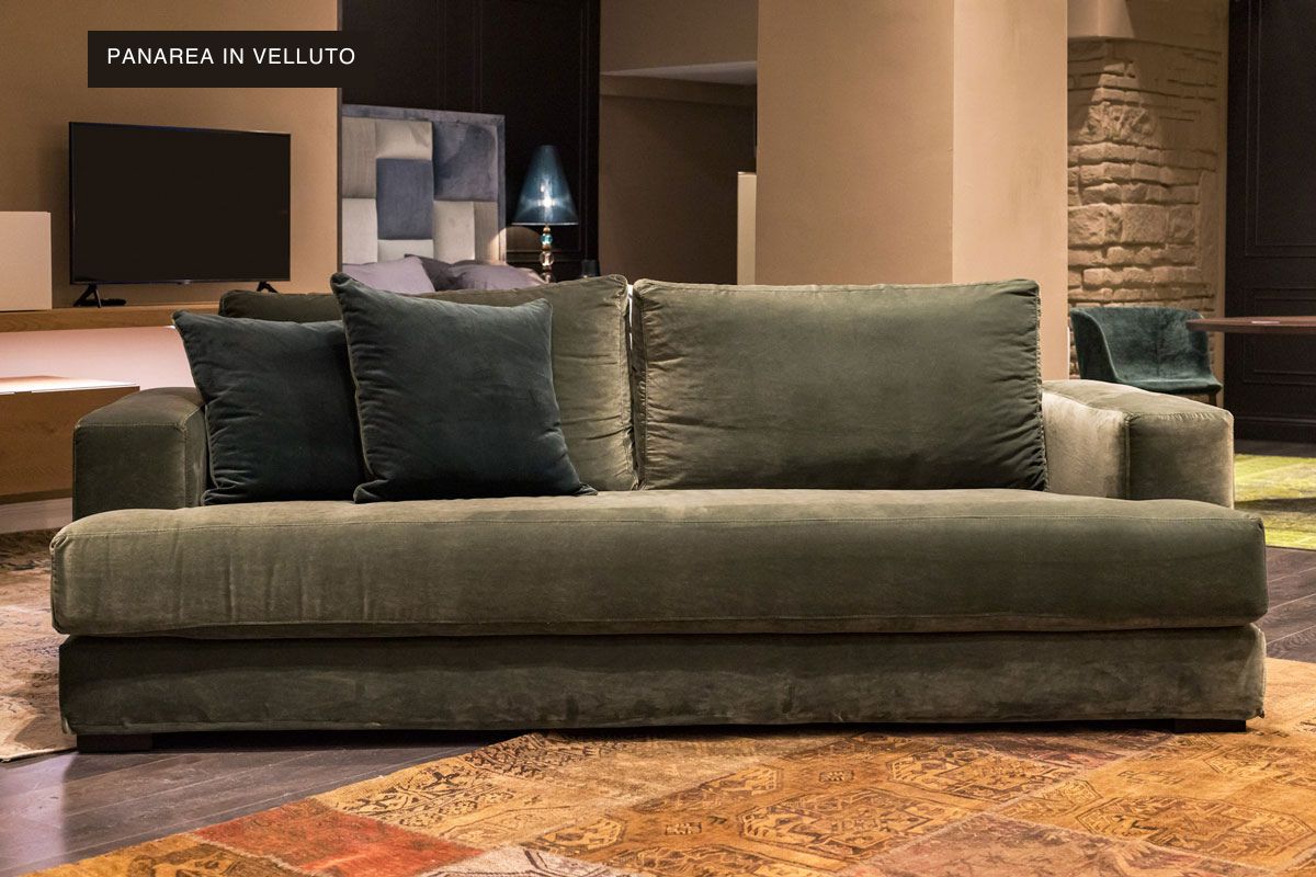 Il divano Panarea è una new entry della linea divani Confalone. Il design è contraddistinto da linee squadrate e da un bracciolo importante. Cattura lo sguardo il cuscino di seduta unico che si estende per tutta la lunghezza del divano.