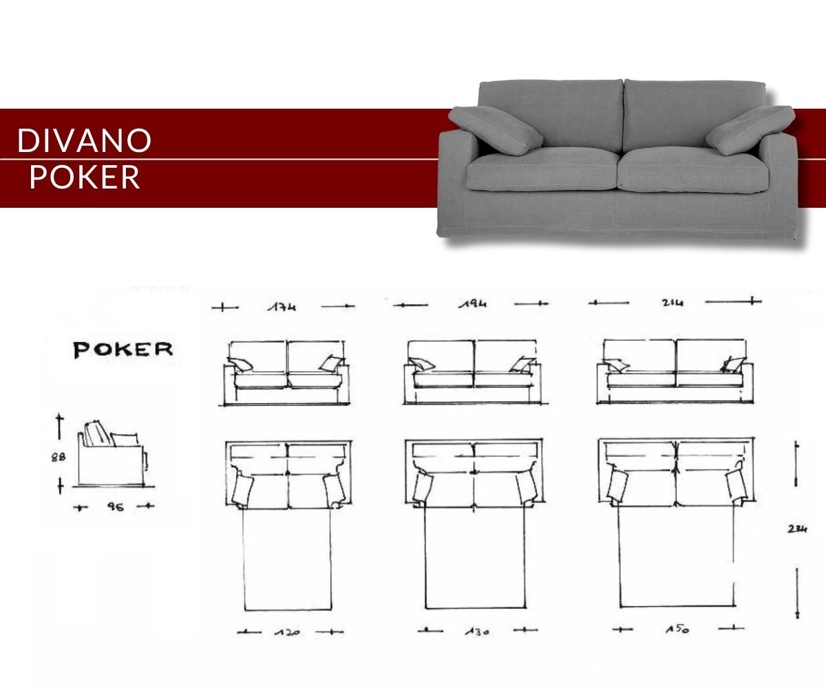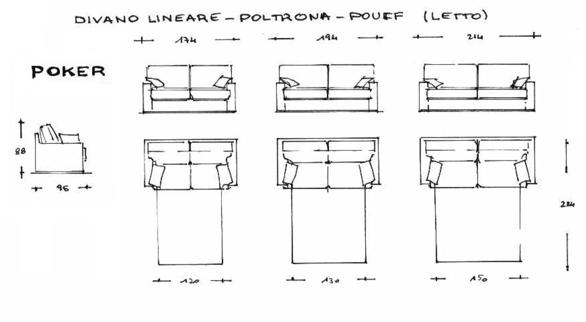 Il divano Poker è disponibile anche in altre due varianti lineari. Tutte le versioni sono realizzabili in versione letto con rete elettrosaldata abbinate ad un materasso indeformabile in poliuretano. Massima praticità di apertura con estrazione della rete letto dalla seduta del divano.
