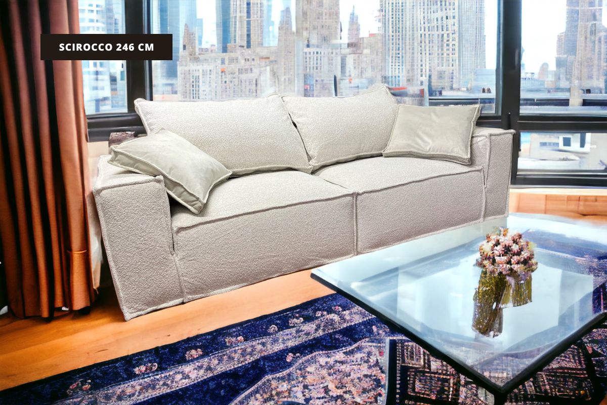 Il divano Scirocco si presenta elegante e dai volumi importanti, esalta il salotto diventando un protagonista della vostra zona di comfort. Disponibile in 2 versioni lineari, Scirocco è una new entry della linea divani Confalone.
