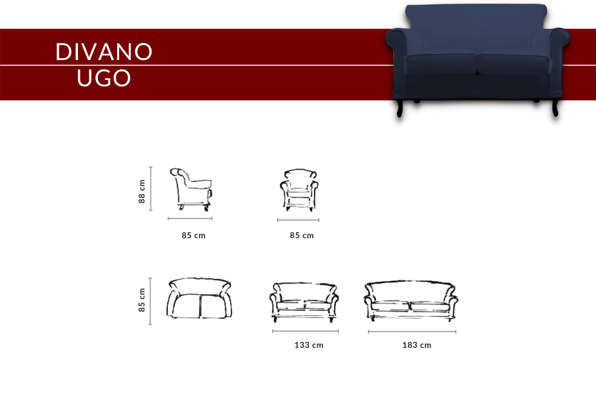 Il divano Ugo sfodera un design dal sapore tipicamente britannico. Disponibile in 15 variazioni di colore e tessuto 100 % cotone. Questo modello è disponibile anche in versione poltrona. Negli store Confalone sono disponibili campionari di colori e tessuti per customizzare il vostro divano con lo stile che più preferite.