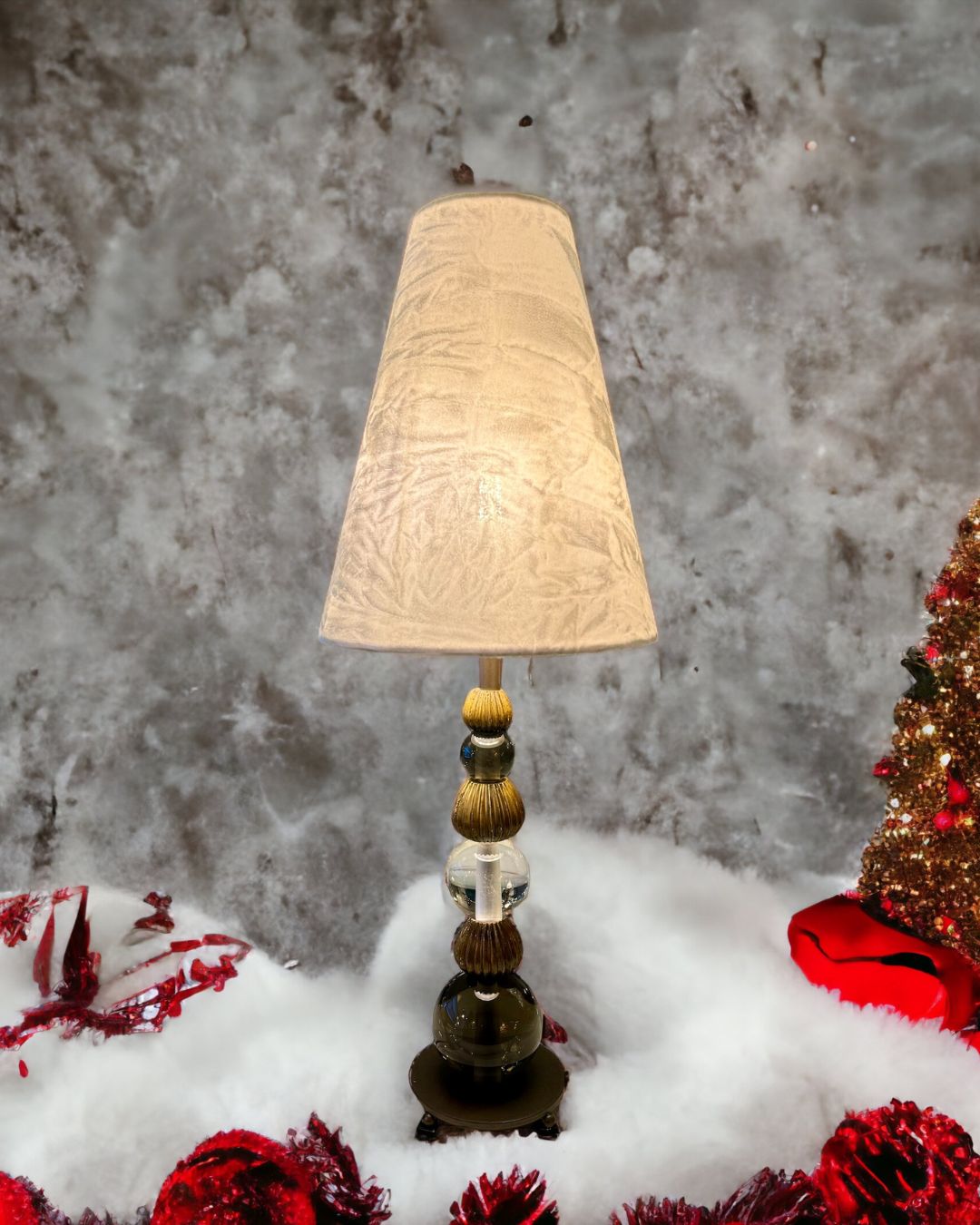 Lampada da tavolo Marion (PM) con paralume in velluto. Questa lampada da tavolo incarna alla perfezione lo stile unico Confalone. La linea di Lampade da Tavolo Confalone Marion è declinata in 3 dimensioni: piccola, media o grande. Una scelta d’amore, capace di riscaldare dall’ambiente più piccolo a quelli più grandi, senza mai stonare.