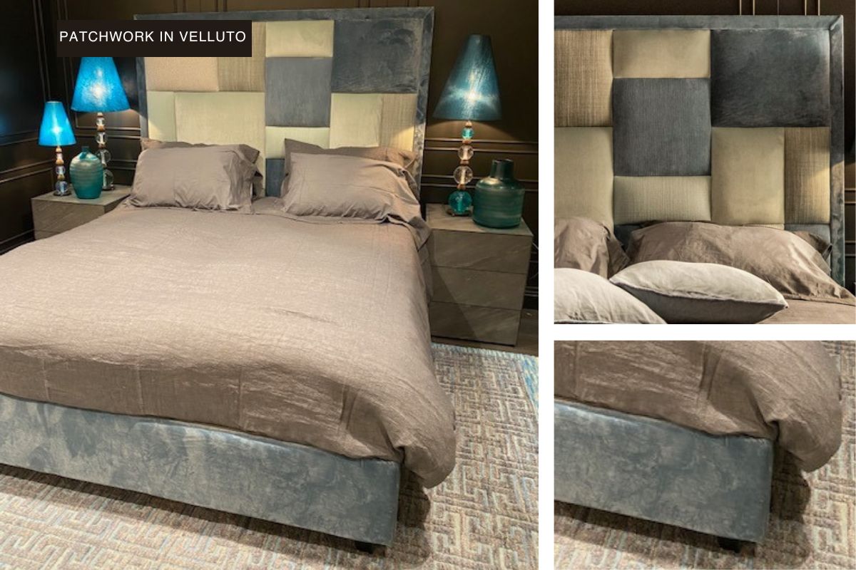 Il letto Matrimoniale con box contenitore modello Patchwork è un nuovo modello della linea letti Confalone. La particolarità del modello Patchwork risiede nella possibilità di creare la propria testiera con i moltissimi tessuti e colori disponibili. Il design del letto matrimoniale patchwork si distingue per una testata alta oltre il metro e sessanta. Il comfort è garantito dalla rete a doghe in legno di faggio con rinforzo centrale. La struttura del box contenitore è realizzata in legno massello multistrato, una caratteristica che conferisce una eccellente resistenza e indeformabilità nel tempo.