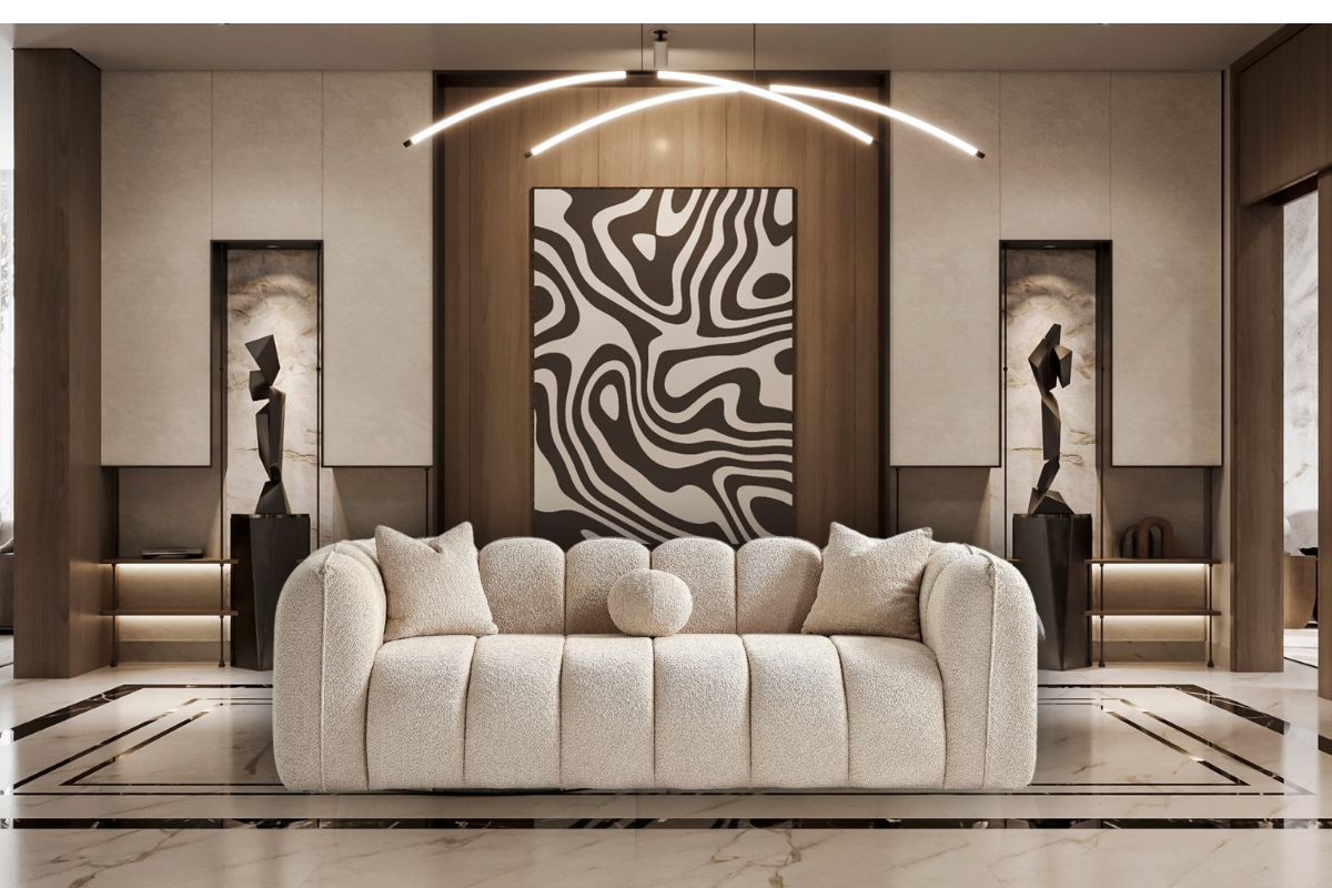 Mosca divano in tessuto bouclè