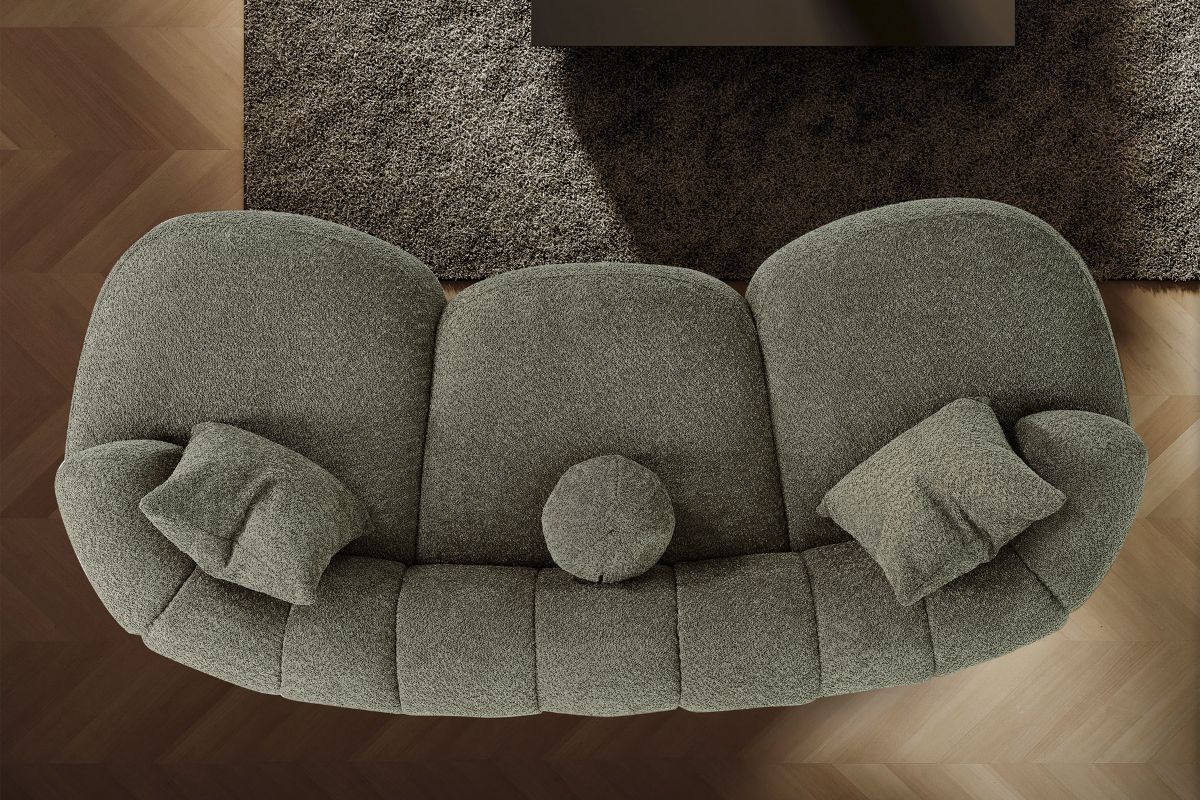 Nairobi in tessuto. Un divano dal design moderno, dalle linee morbide e avvolgenti.