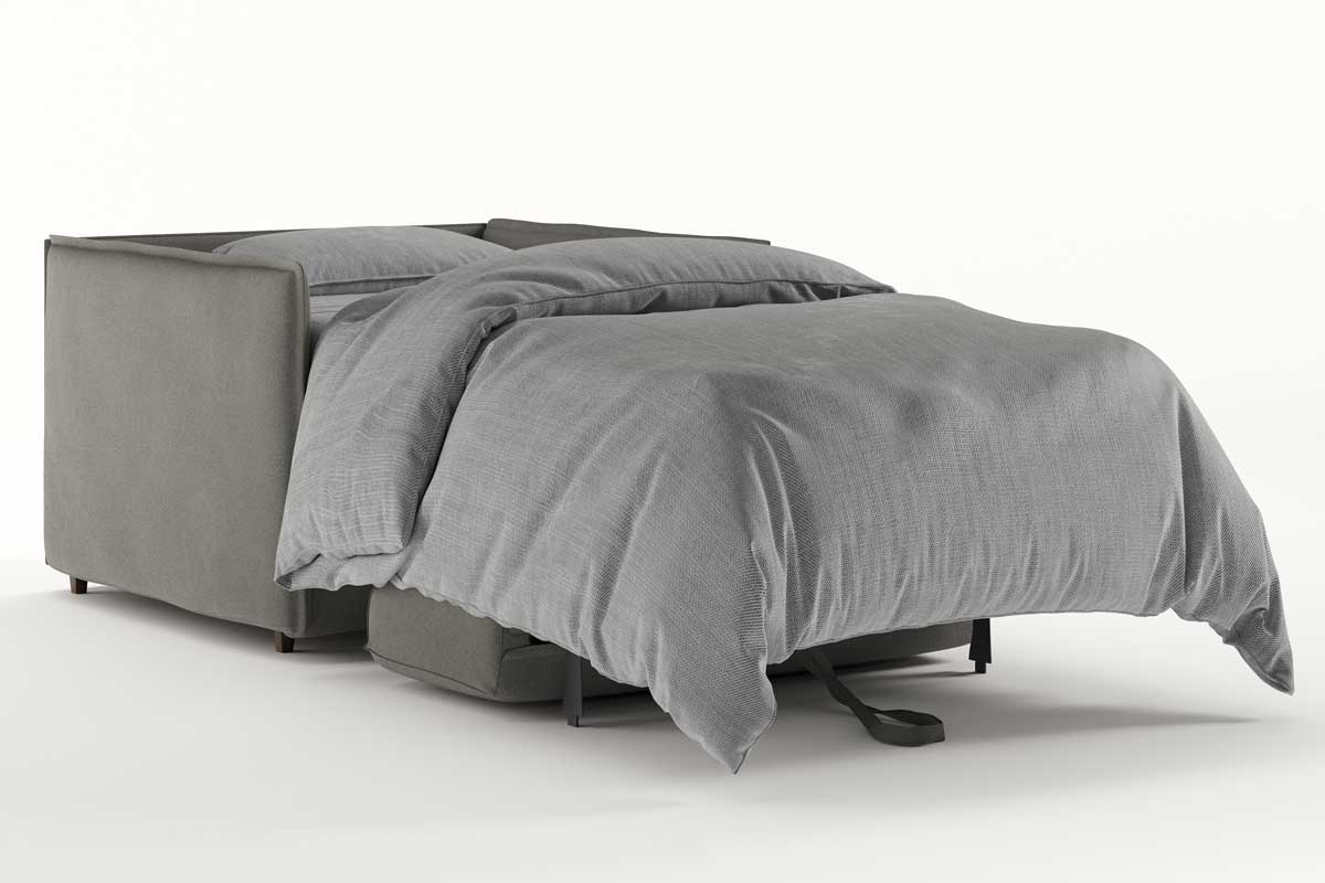 La poltrona letto web ha un design moderno e ingombri ridotti grazie allo stile minimal dei braccioli. La poltrona letto Web si trasforma in un letto dal comfort sorprendente.