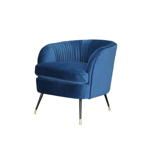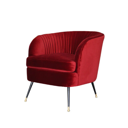 Poltroncina in velluto pregiato impreziosita dalla lavorazione plissè dello schienale.