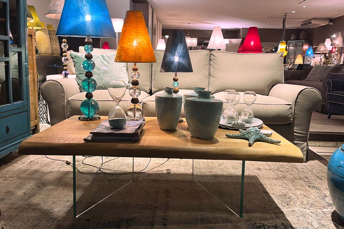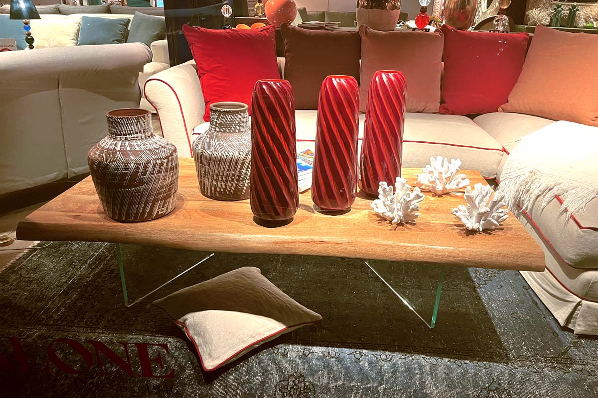 I Tavolini da salotto in legno e struttura con gamba in vetro sono disponibili in due dimensioni
