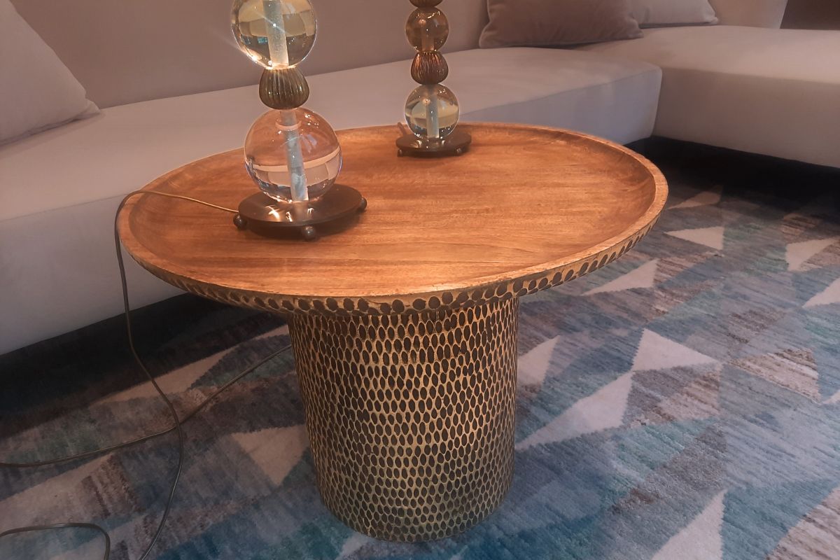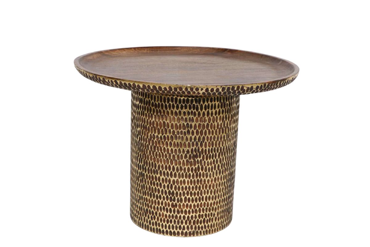 Tavolino in legno con finitura in color oro.