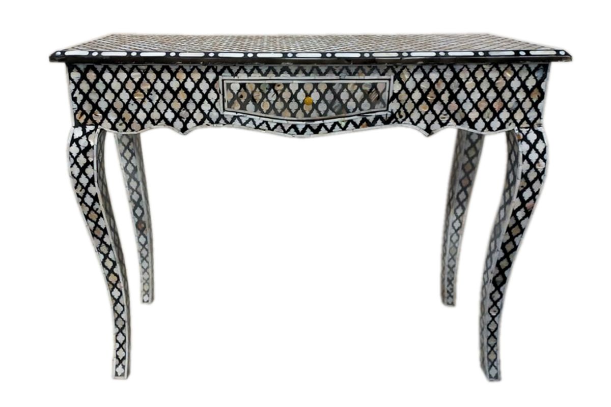 Tavolo consolle con cassetto centrale. Questa consolle fa parte della collezione Intarsi 2024.