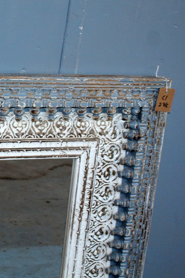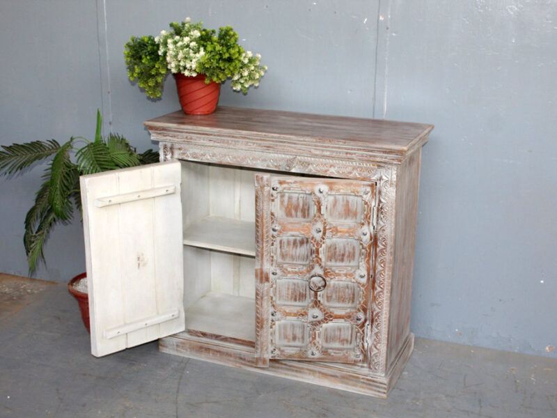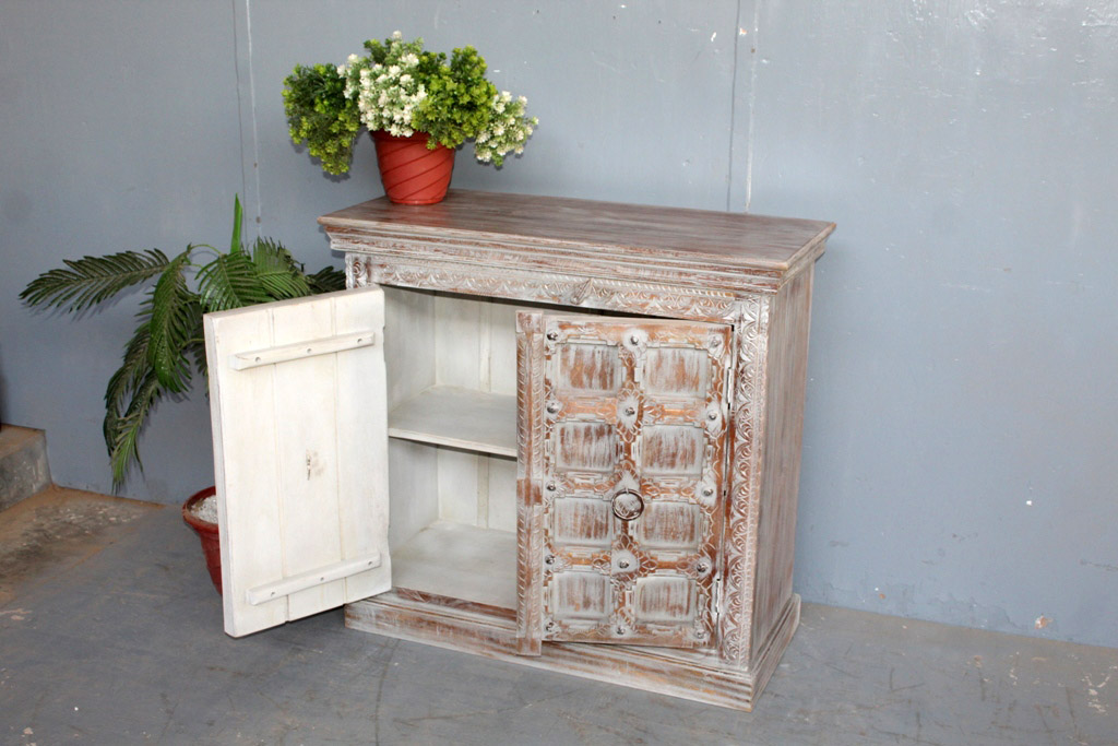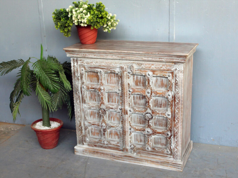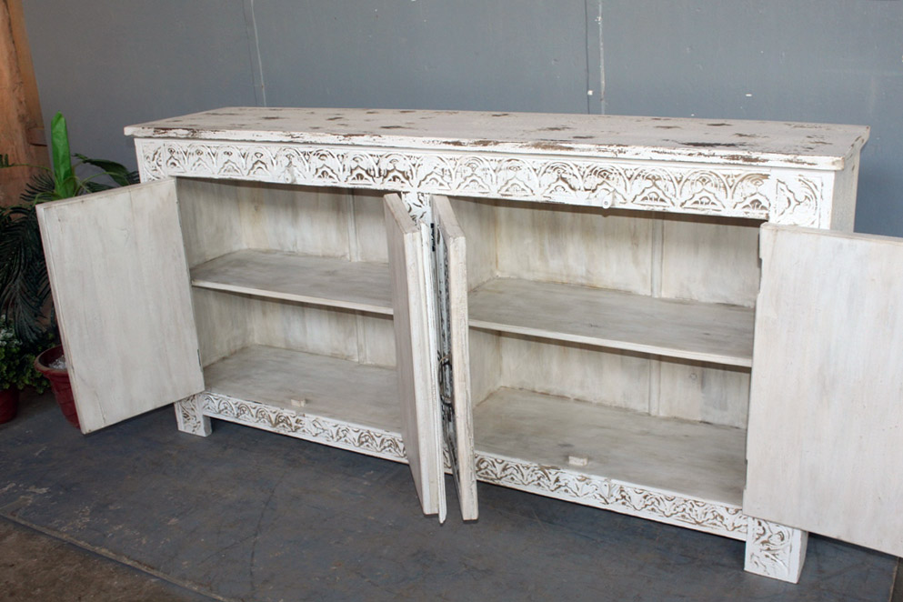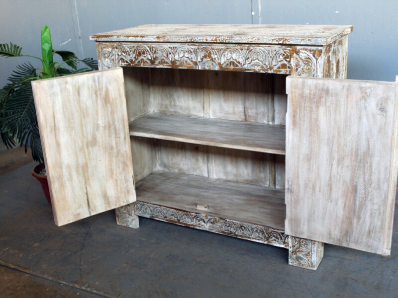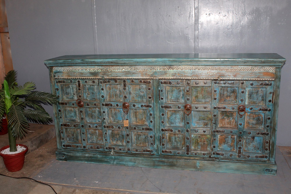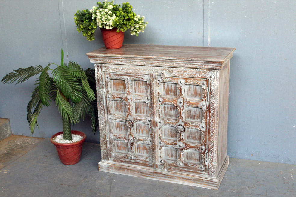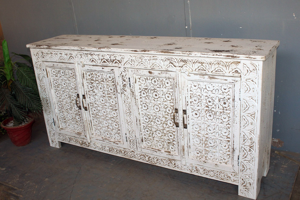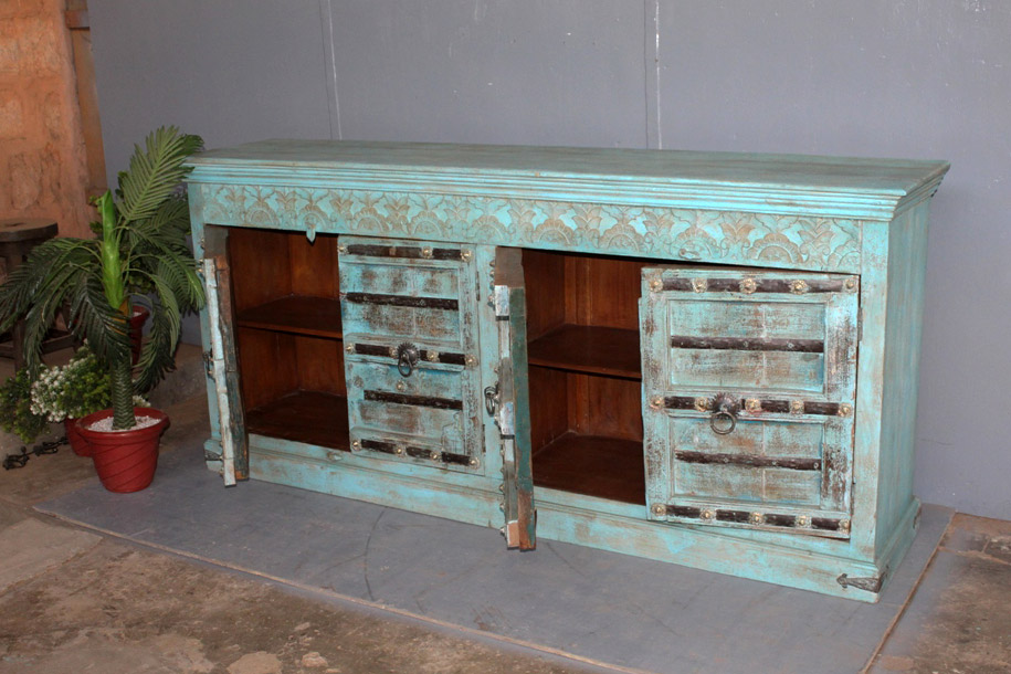 Tra le caratteristiche peculiari dei mobili indiani vi è la lavorazione a mano delle cesellature e dei decori in altorilievo o bassorilievo e l’utilizzo di colori naturali che rispecchiano le tinte delle terre di provenienza.