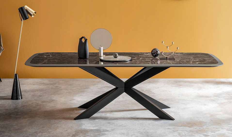 I tavoli della nuova collezione hanno forme moderne ma al contempo classiche, perfette per impreziosire qualsiasi tipo di arredamento, tonde, rettangolari e dalla caratteristica forma a saponetta, con angoli smussati, linea che rende il tavolo unico e comodissimo.