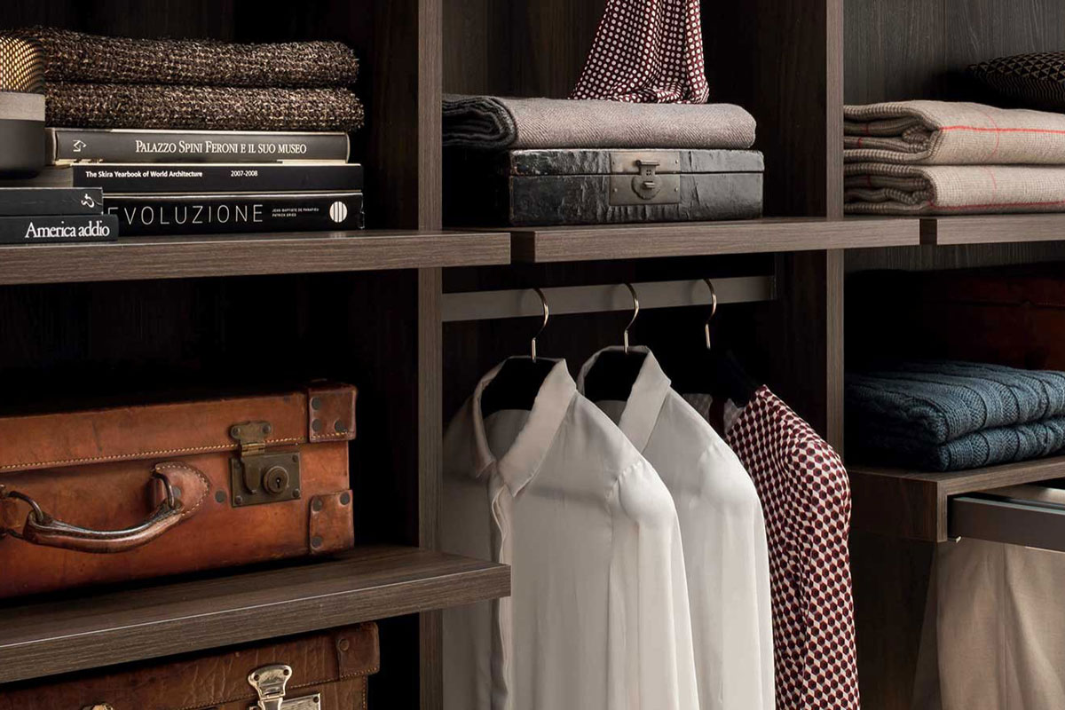 L’armadio può anche inglobare altri elementi ed assolvere a varie funzioni all’interno della camera: può ad esempio presentare una nicchia porta TV, delle mensole contenitive per oggetti o libri, specchi e cassettiere.